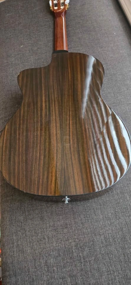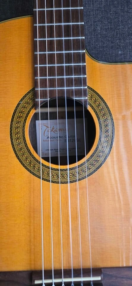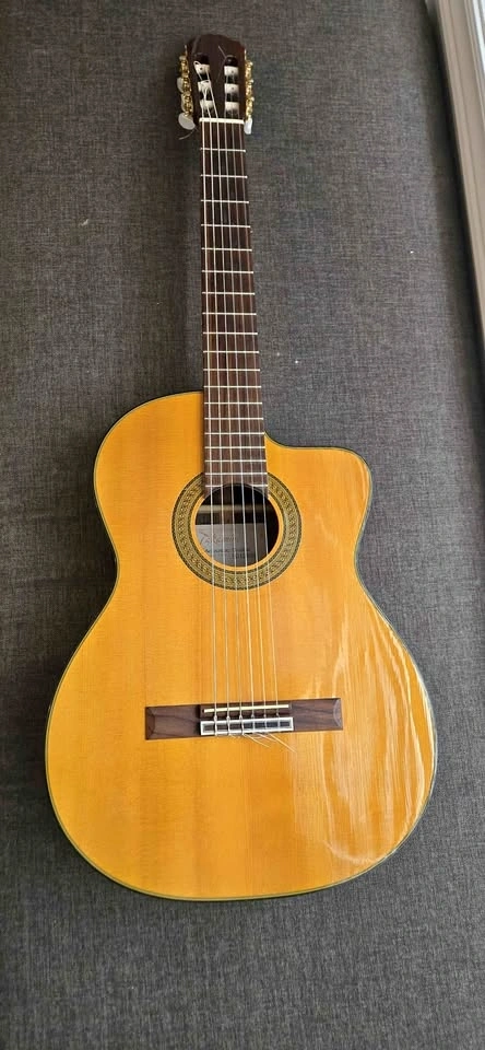 Beautiful Takamine EG128SC in very good condition. This nylon-string classical features a solid spruce top for rich, dynamic tone with great projection, rosewood back and sides, and a comfortable cutaway body for easy upper-fret access. It comes equipped with the reliable Takamine TP4T preamp (3-band EQ + built-in tuner), so it sounds fantastic both unplugged and amplified — perfect for classical, fingerstyle, or stage use. Comes with Standard gig bag and capo.