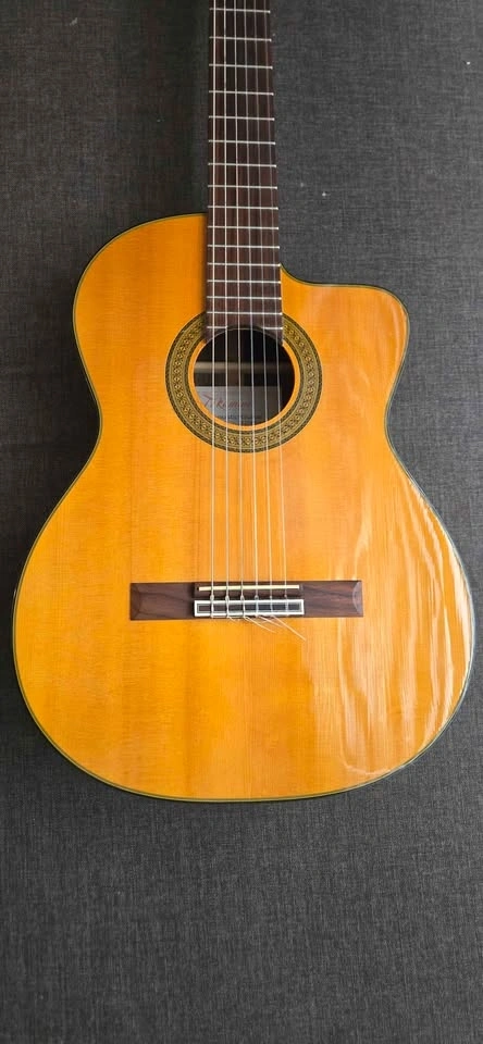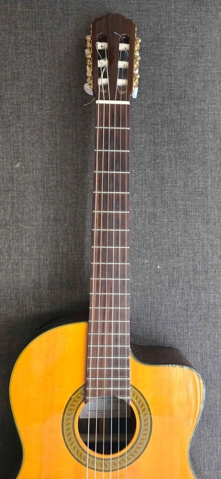 Beautiful Takamine EG128SC in very good condition. This nylon-string classical features a solid spruce top for rich, dynamic tone with great projection, rosewood back and sides, and a comfortable cutaway body for easy upper-fret access. It comes equipped with the reliable Takamine TP4T preamp (3-band EQ + built-in tuner), so it sounds fantastic both unplugged and amplified — perfect for classical, fingerstyle, or stage use. Comes with Standard gig bag and capo.