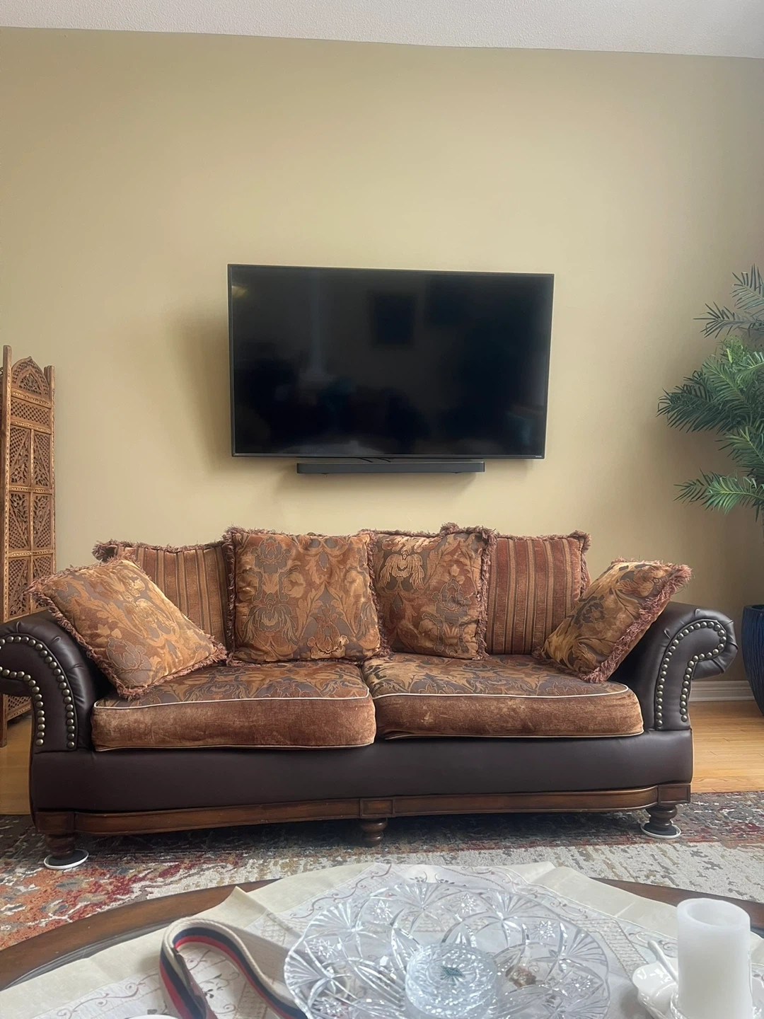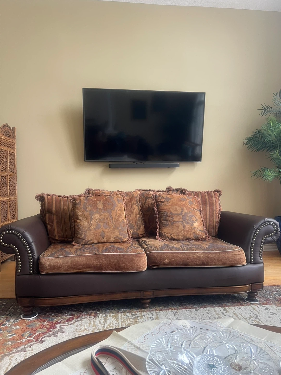 Brown Leather Sofa with Decorative Studs