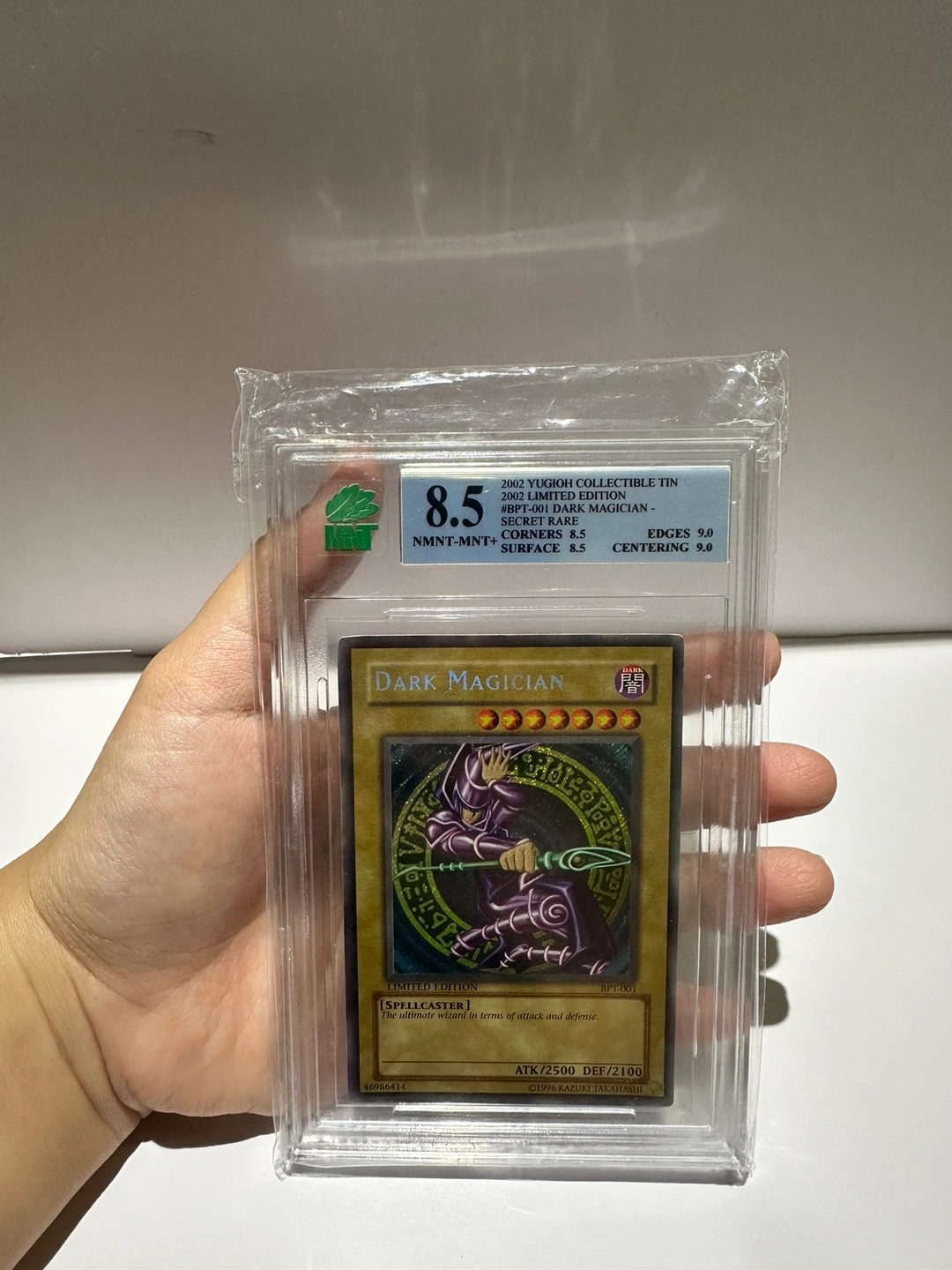 Graded 8.5 - PSA graded Dark Magician from the 2002 Limited Edition Tin. The card comes in a hard case.