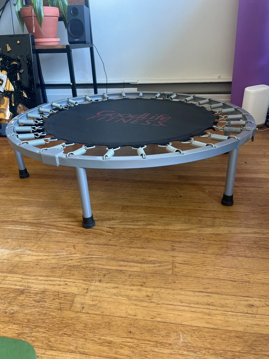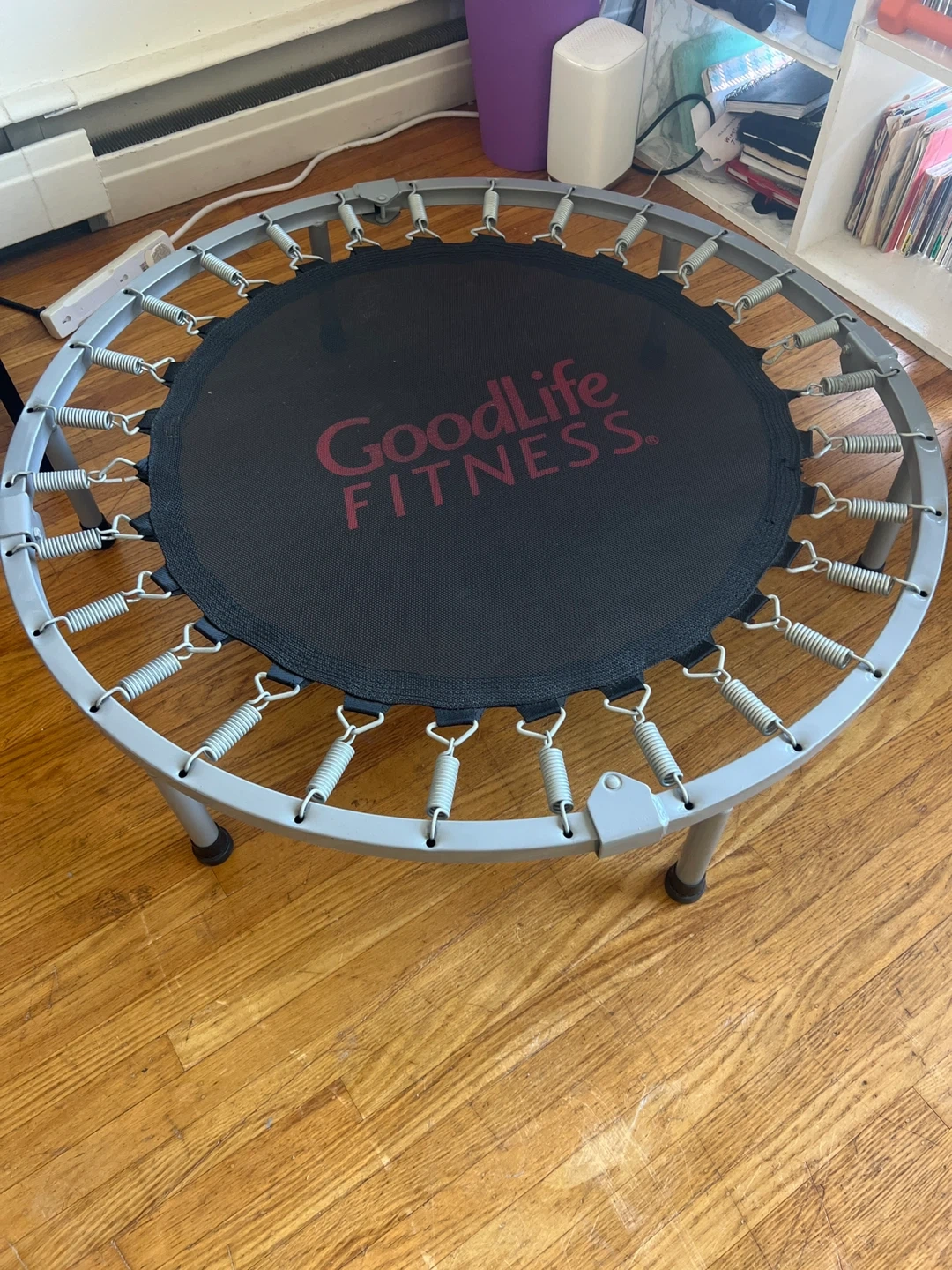 Selling a mini trampoline from GoodLife Fitness. It's in great shape and perfect for a quick workout at home! Lightweight and easy to move around, so you can get your exercise in wherever you have space