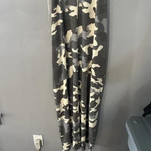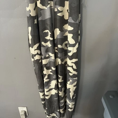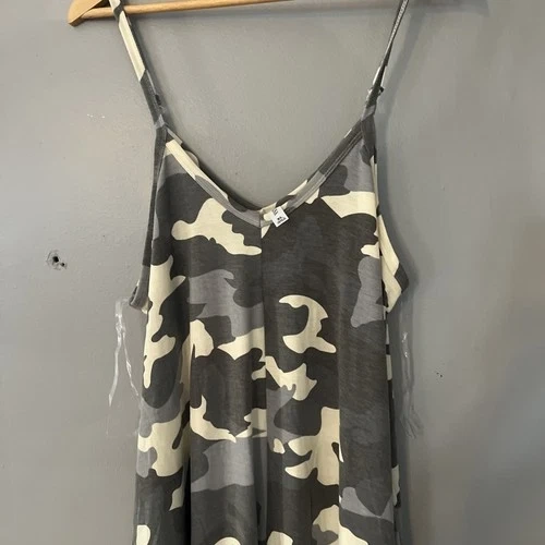 This is a women's maxi dress in size XL, featuring a gray camouflage pattern. It has pockets and a long length, making it both stylish and practical. The dress is by the brand Zenana. Perfect for a casual or outdoor outfit.