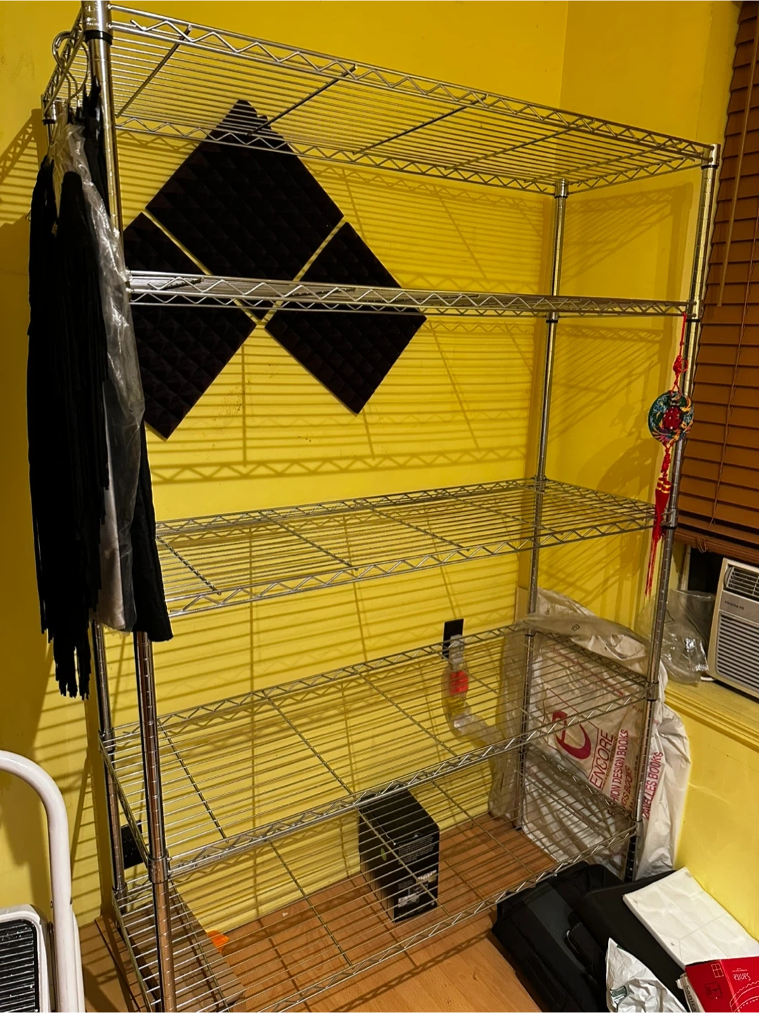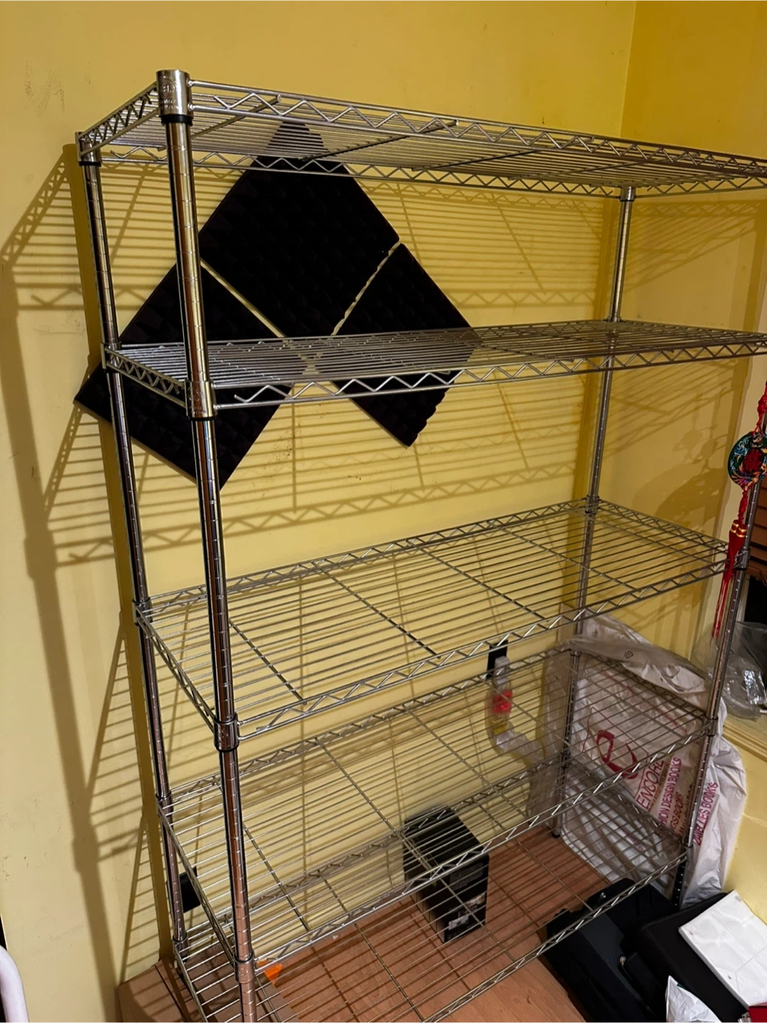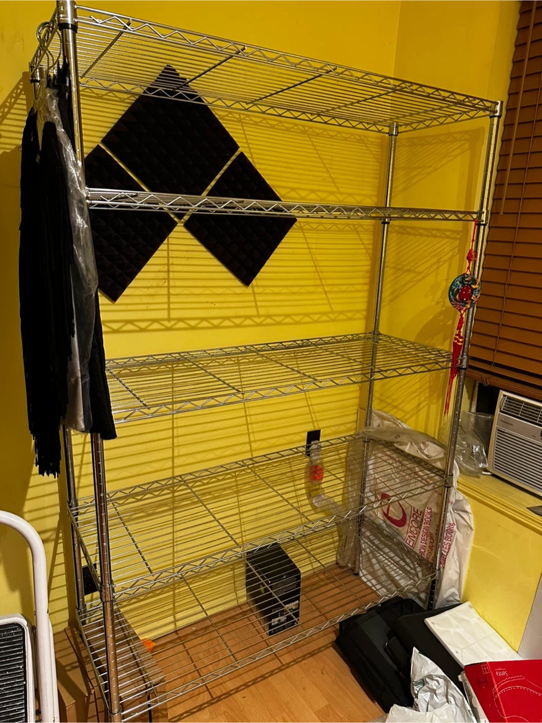 Selling a metal wire shelving unit! It's great for storage and organization in any room. It has multiple shelves and is in good condition.