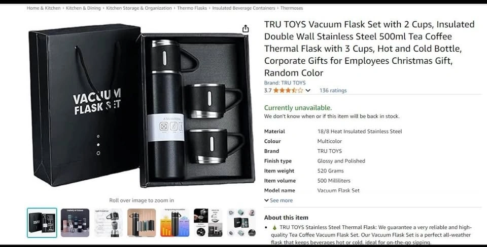 Buy & SellVacuum Flask Set (Black)Vacuum Flask Set (Black)$10Insulated double wall stainless steel 500 ml Tea coffee thermal flask with 2 cups. Hot and cold bottle. Great as a return gift or Christmas gift.ConditionNewWHERE TO MEETCheck LocationView MapSELLERverifiedPreethiAjax700 reviews5 chats·2 favorites·57 viewsSEND CHAT TO SELLERHi Preethi! I’m interested in your listing.Hi Preethi! I’m interested in your listing.Get the Karrot app to chatSign In to chat