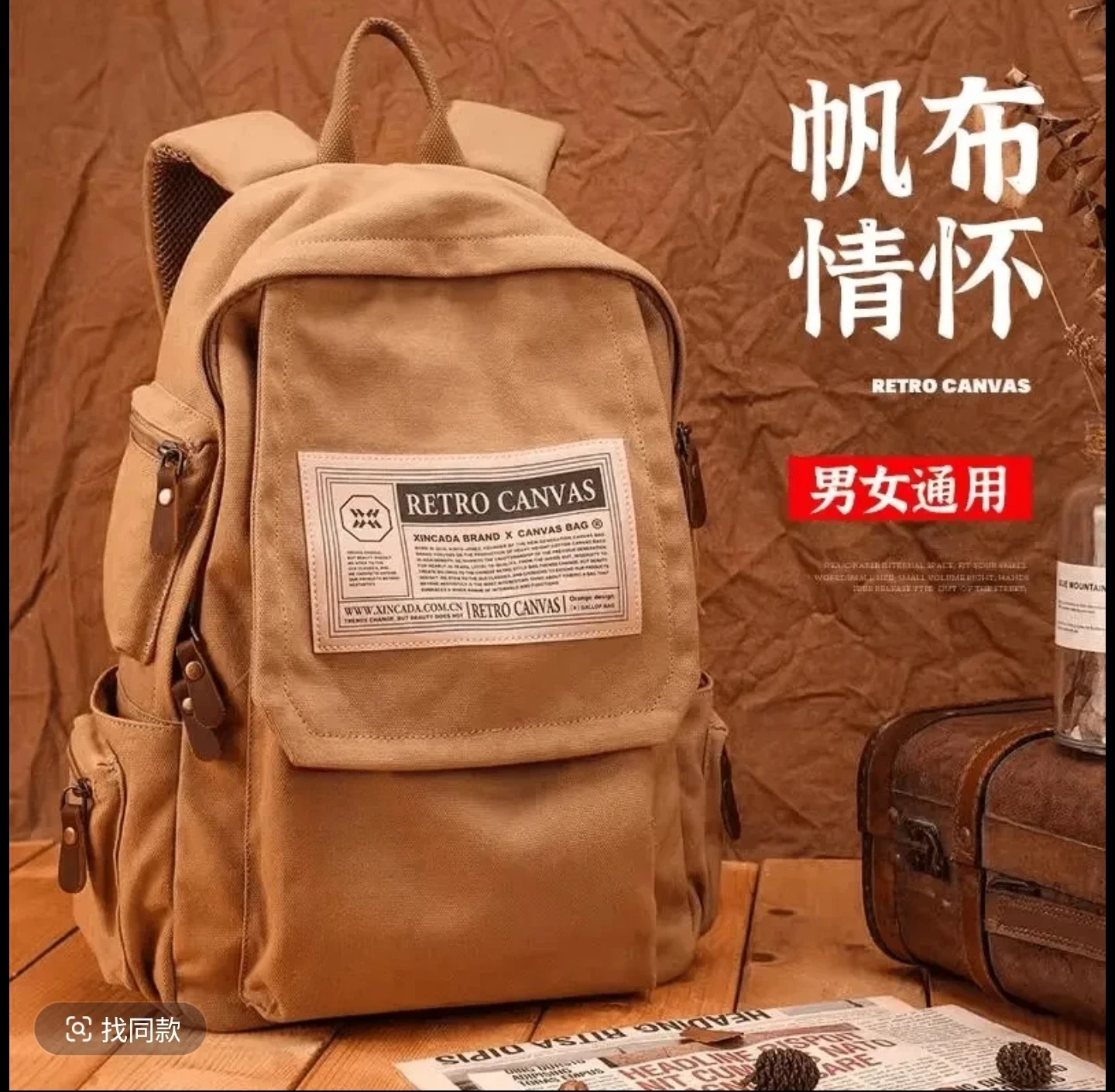 Retro Canvas Backpack - Khaki
