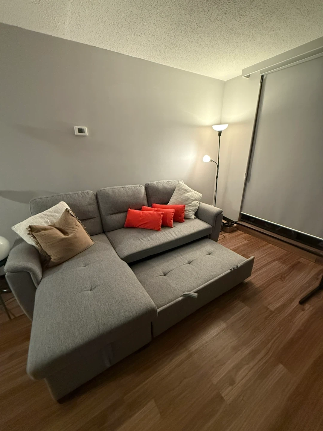 It’s in great condition, cleaned and can be taken apart for easy transport. Pillows can be added too.