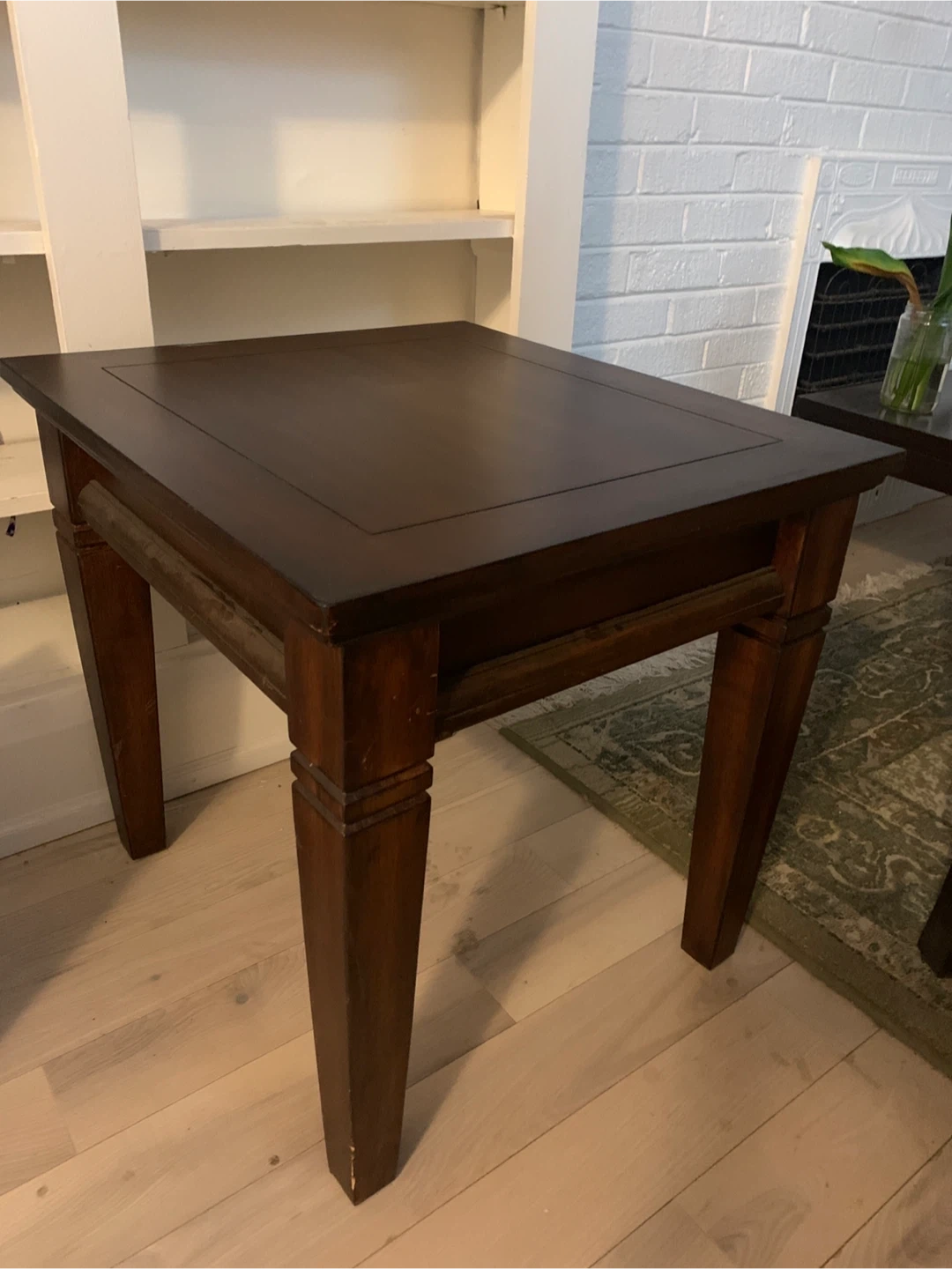 Selling dark brown wooden side tables. In good condition and would be a great addition to any living room or bedroom.
