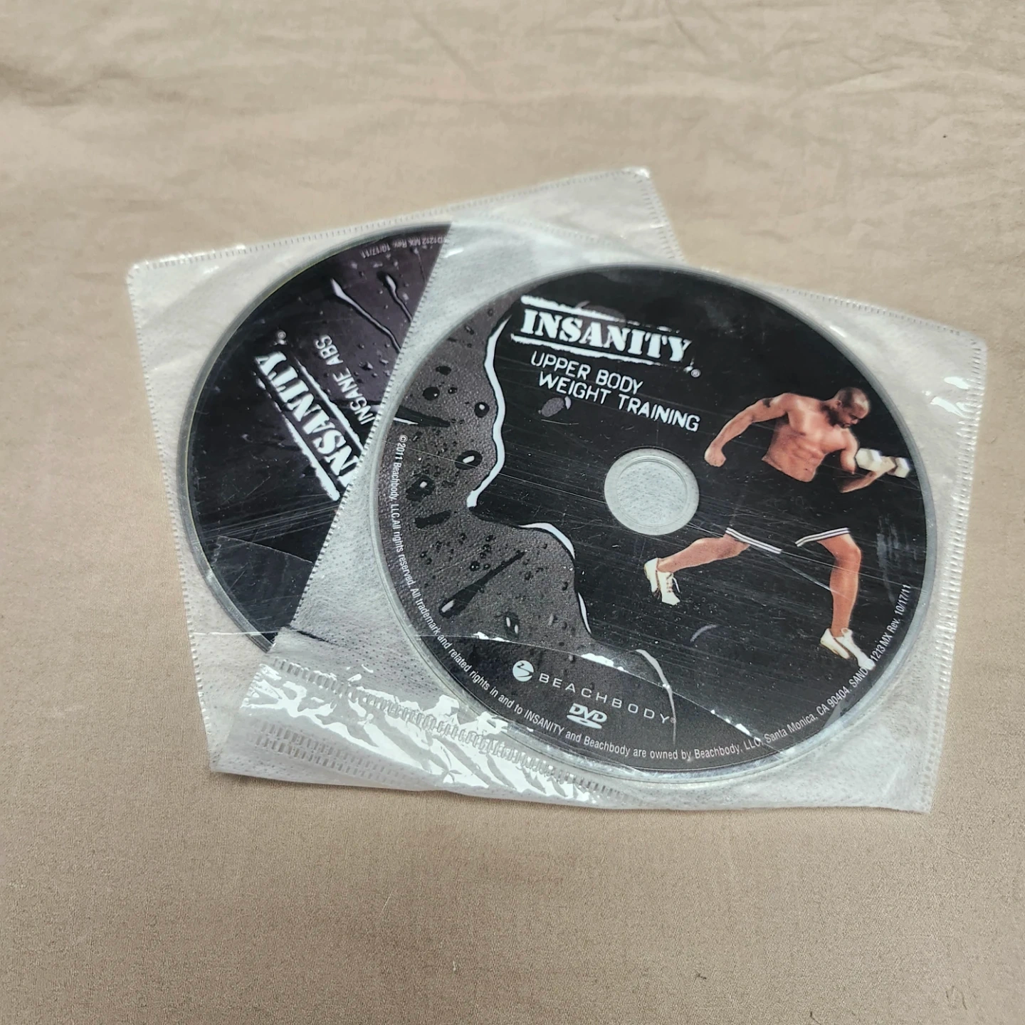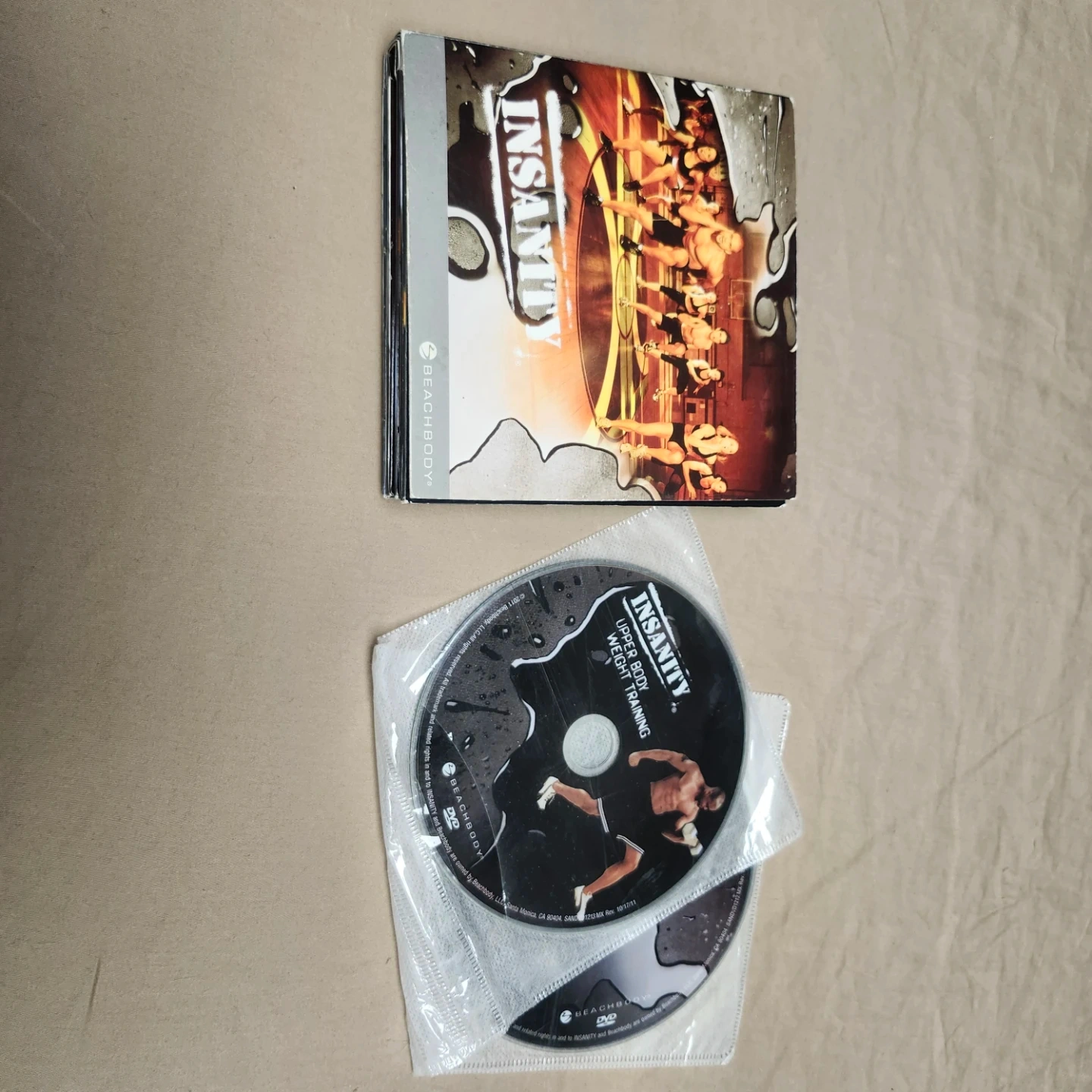 This is the INSANITY Upper Body Weight Training DVD set. It includes multiple workout discs. The discs are in protective sleeves. This program is from 2012.