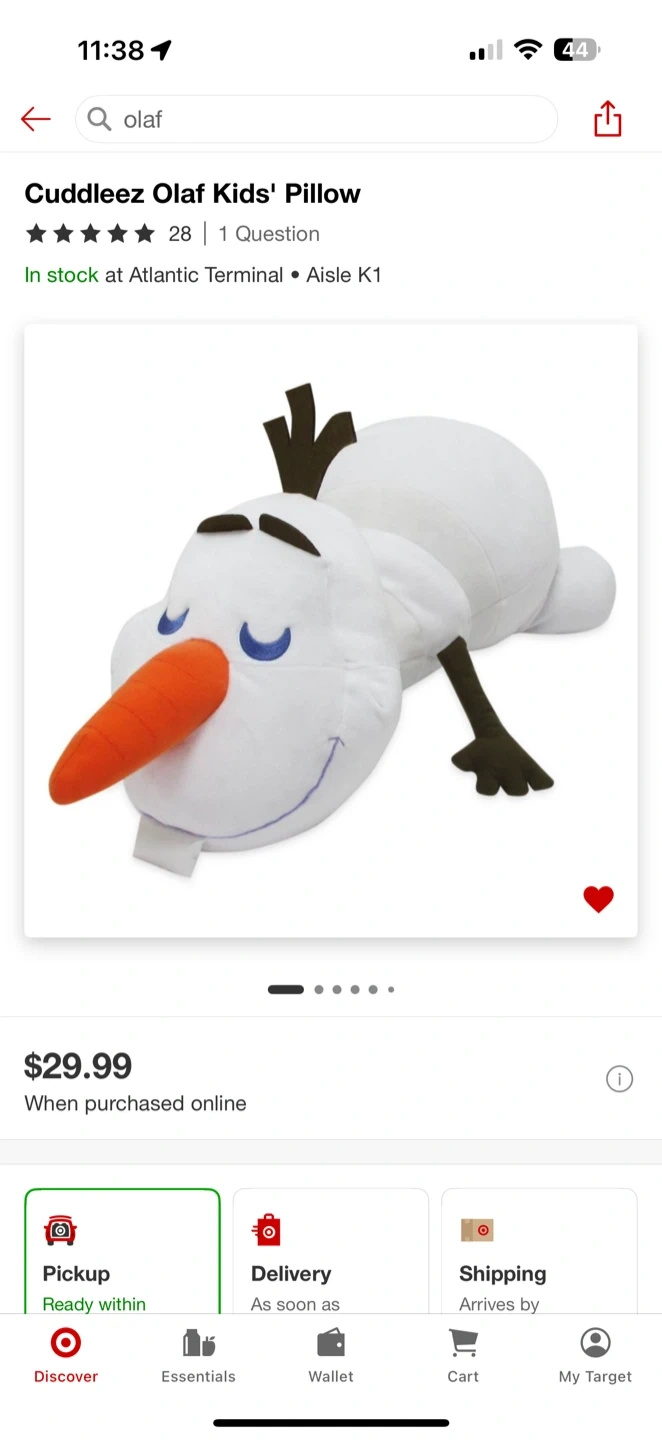 Selling a Cuddleez Olaf kids' pillow! It's in great condition and ready for a new home. It's a super soft and cuddly pillow, perfect for kids who love Frozen. Originally bought for $29.99