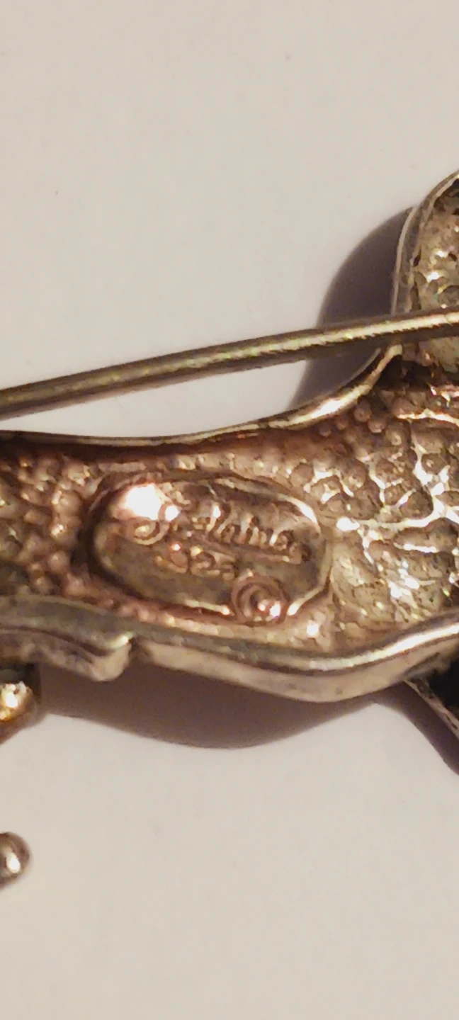 Adorable sterling silver dachshund brooch! It's marked 925 Sterling for quality. This charming pin is perfect for any dog lover! Excellent condition.