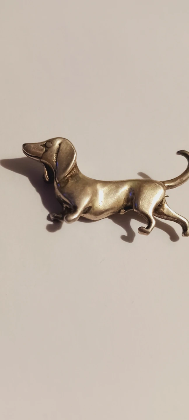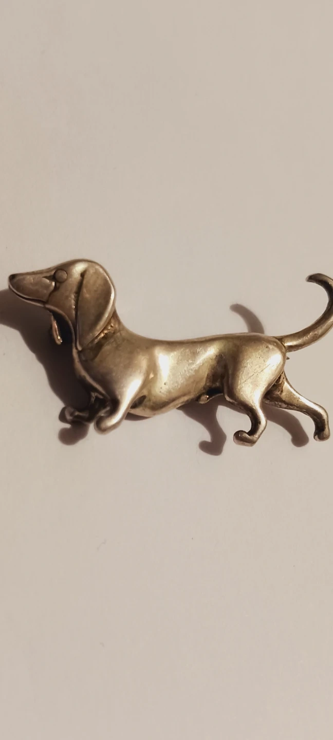 Adorable sterling silver dachshund brooch! It's marked 925 Sterling for quality. This charming pin is perfect for any dog lover! Excellent condition.