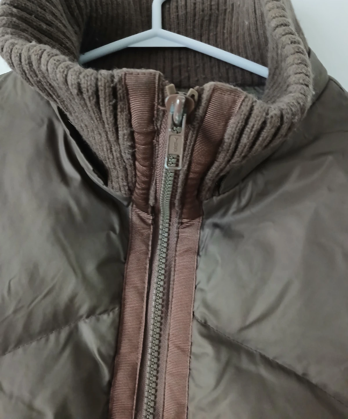 This Buffalo David Bitton puffer jacket is brown and size medium. It's made with a 100% nylon shell and lining, and filled with 50% duck down and 50% feather. Ribbed cuffs and collar provide a snug fit.