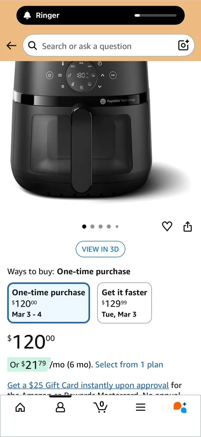 Philips Airfryer 2000 Series. It's a 4.4 Qt capacity appliance with Rapid Air Technology. This air fryer is great for quick and easy meals!