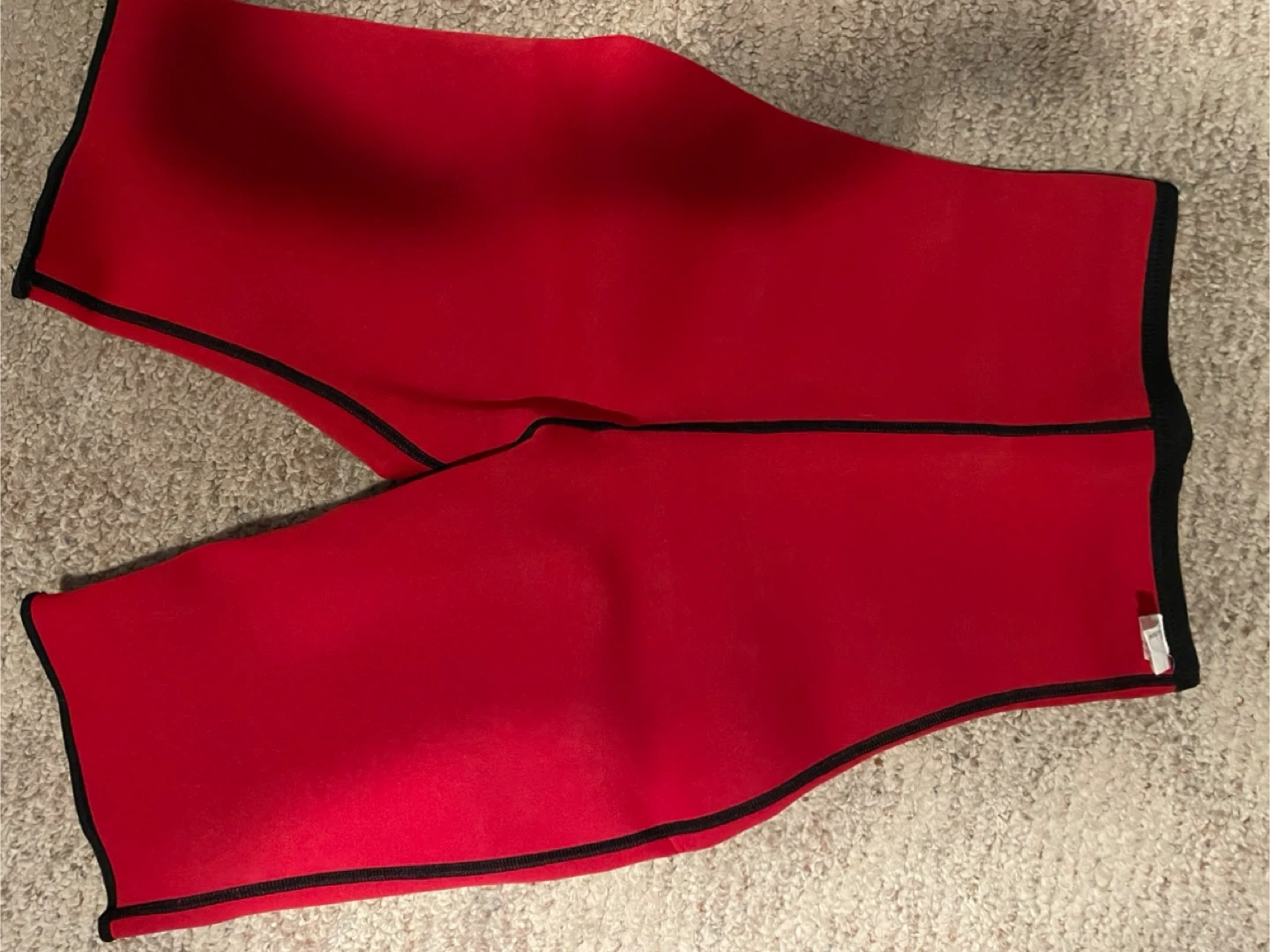 Red shorts made with 90% neoprene and 10% nylon. Size is S. Made in Taiwan. Features Bio-Slms Bio-Ceramic Power. These are great for activities that require movement and support.