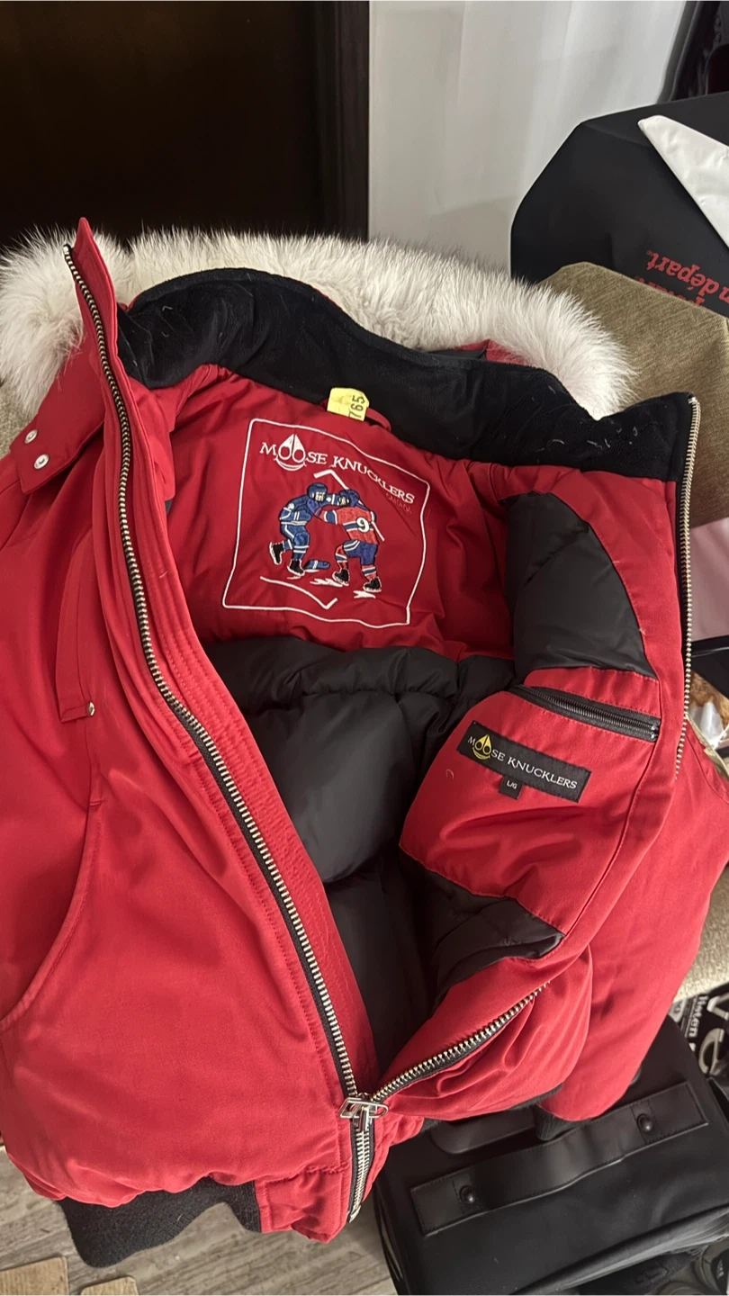 Buy & SellMoose Knuckles Red Puffer Jacket with Fur HoodMoose Knuckles Red Puffer Jacket with Fur Hood$220Red Moose Knuckles puffer jacket. Features a fur-lined hood and embroidered logo inside. Kid Size L.ConditionLike newSizeKid LargeBrandMoose KnucklesWHERE TO MEETMcDonaldView MapSELLERverifiedTonyAberdeen650 reviews0 chats·0 favorites·5 viewsSEND CHAT TO SELLERHi Tony! I’m interested in your listing.Hi Tony! I’m interested in your listing.Get the Karrot app to chatSign In to chat