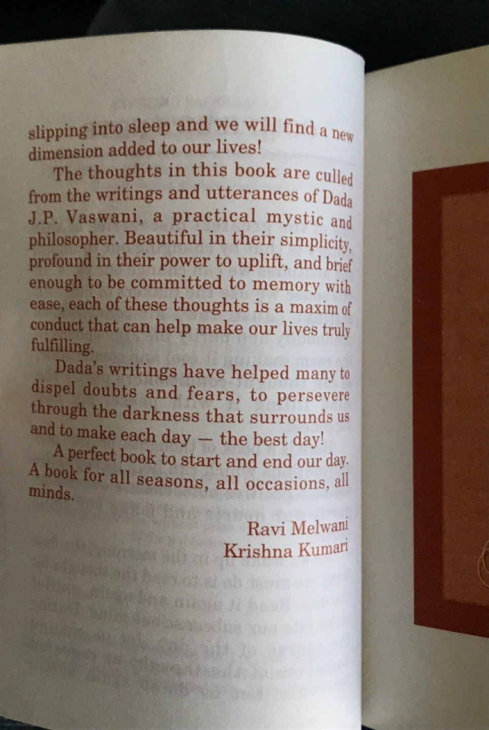 The small and conveniently sized book is purposely made that way to easily carry along for day to day, having it close on hand anywhere and anytime some inspiration and grounding is needed.