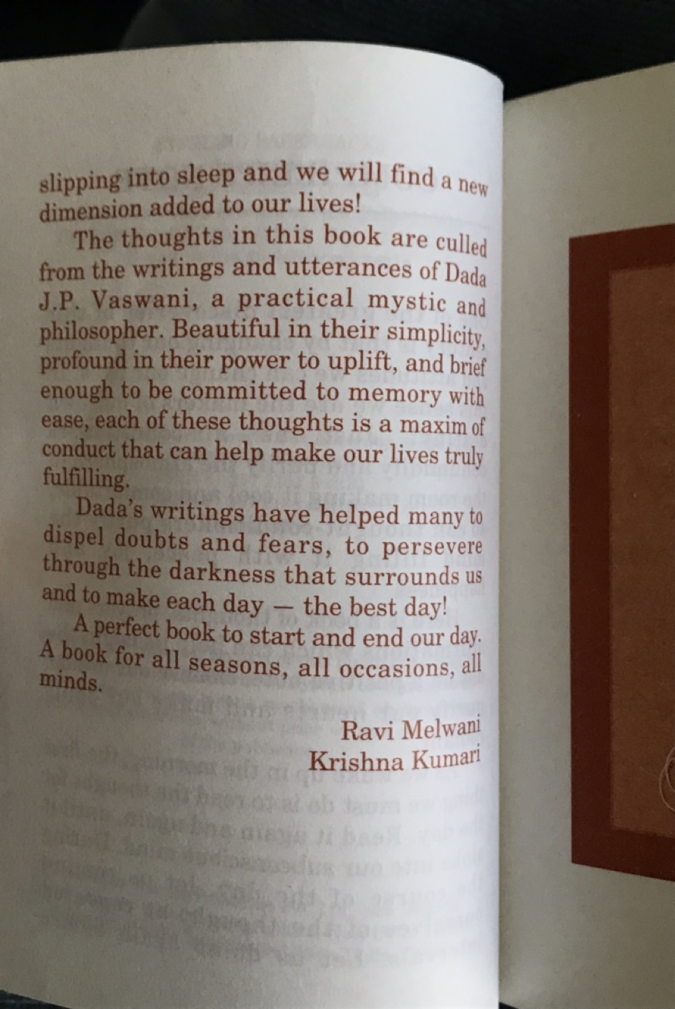 The small and conveniently sized book is purposely made that way to easily carry along for day to day, having it close on hand anywhere and anytime some inspiration and grounding is needed.
