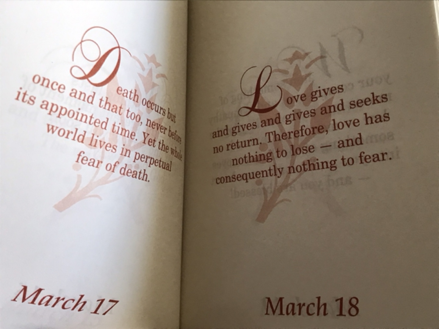 There are inspirational & aspirational words for Each day of the entire year, which set the mind to tackle our days with Calm and Positivity.