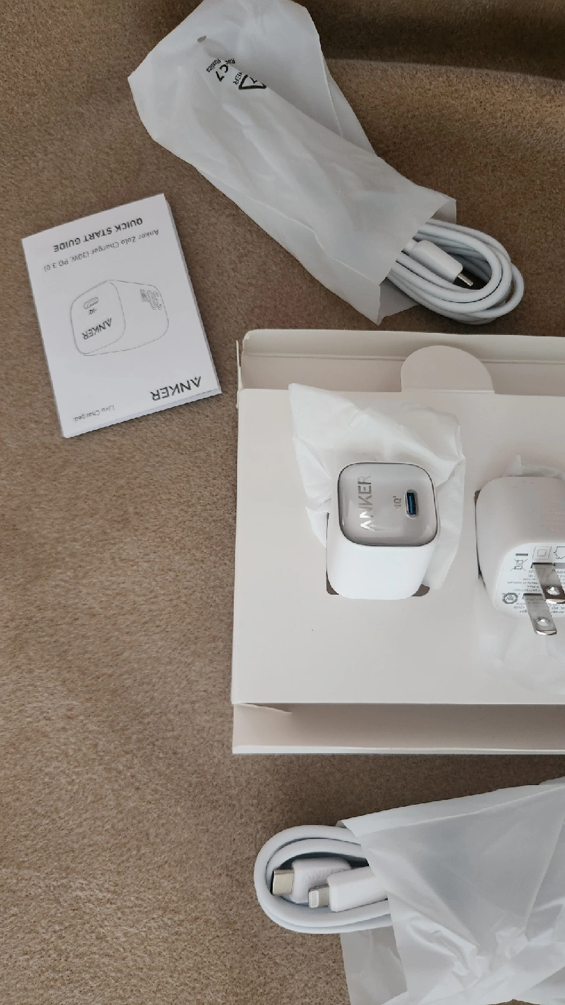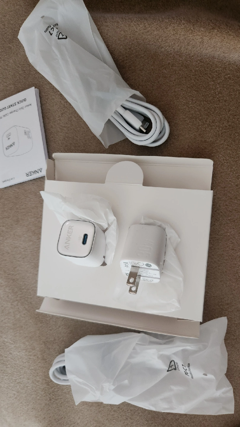 Selling 2 brand new Anker Charger (30W) in its original box! This charger is super handy for all your devices. It's lightweight and portable, perfect for travel or everyday use. Included are the charger itself, the charging cables, and the quick start guide. Get it while it's available!