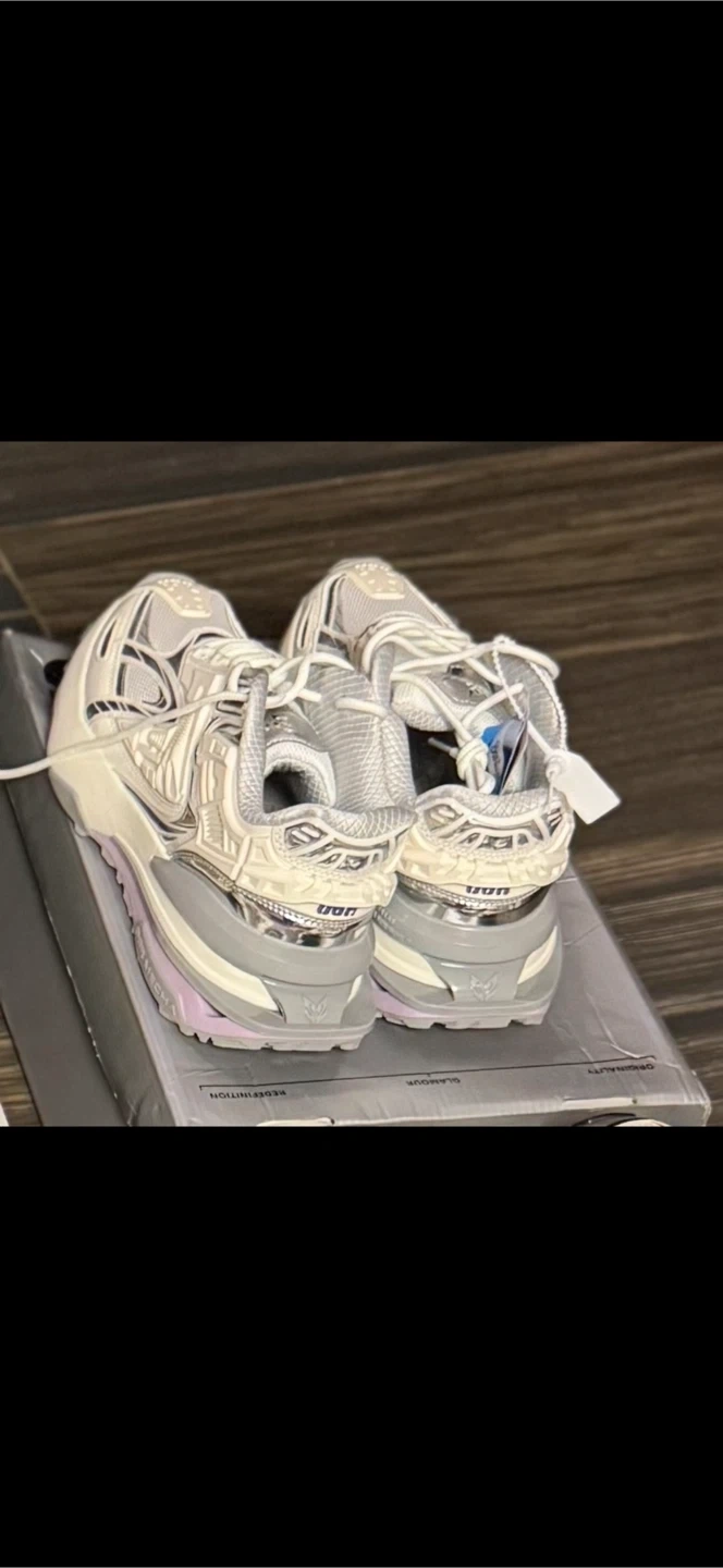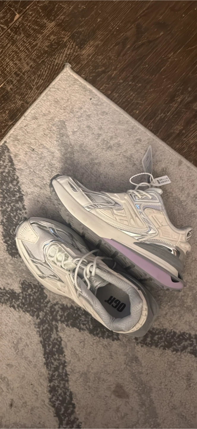 These OGR sneakers are white with silver accents. They feature a cushioned sole for comfort. This pair is suitable for everyday wear.