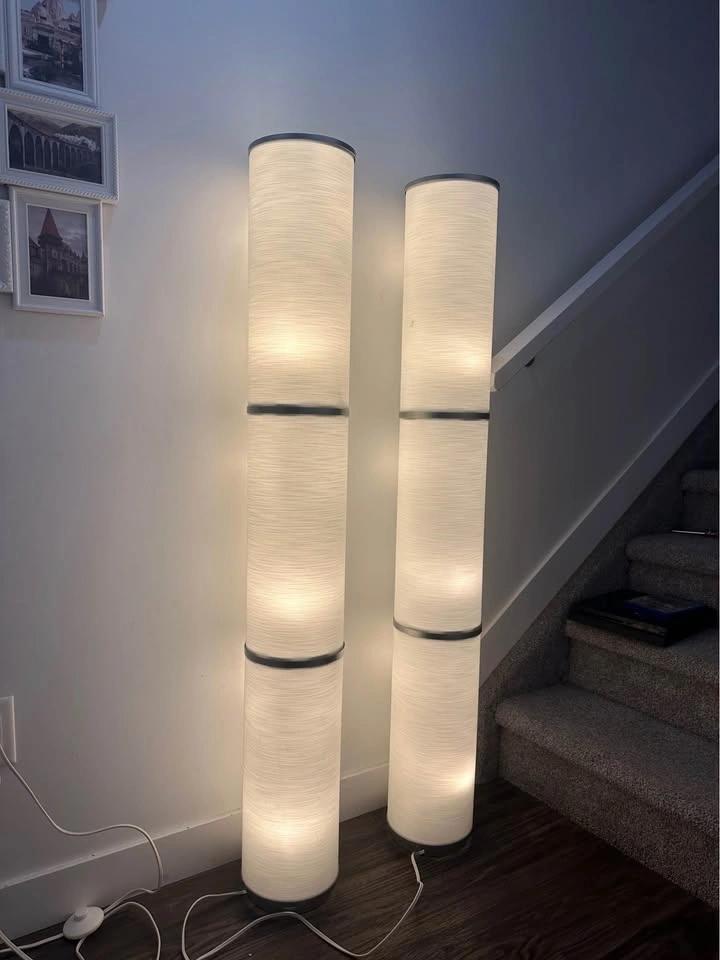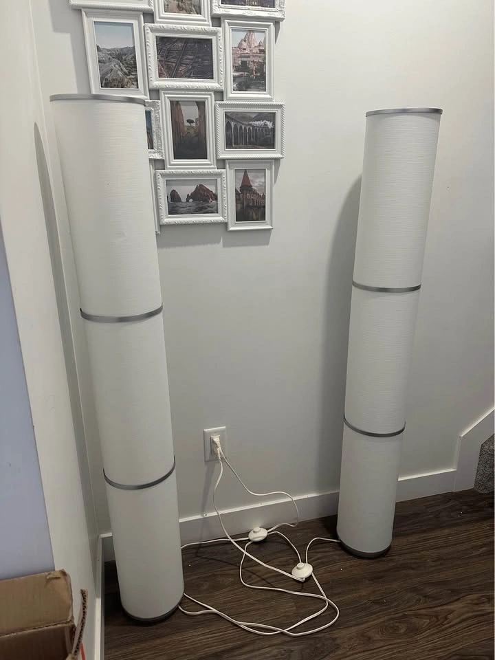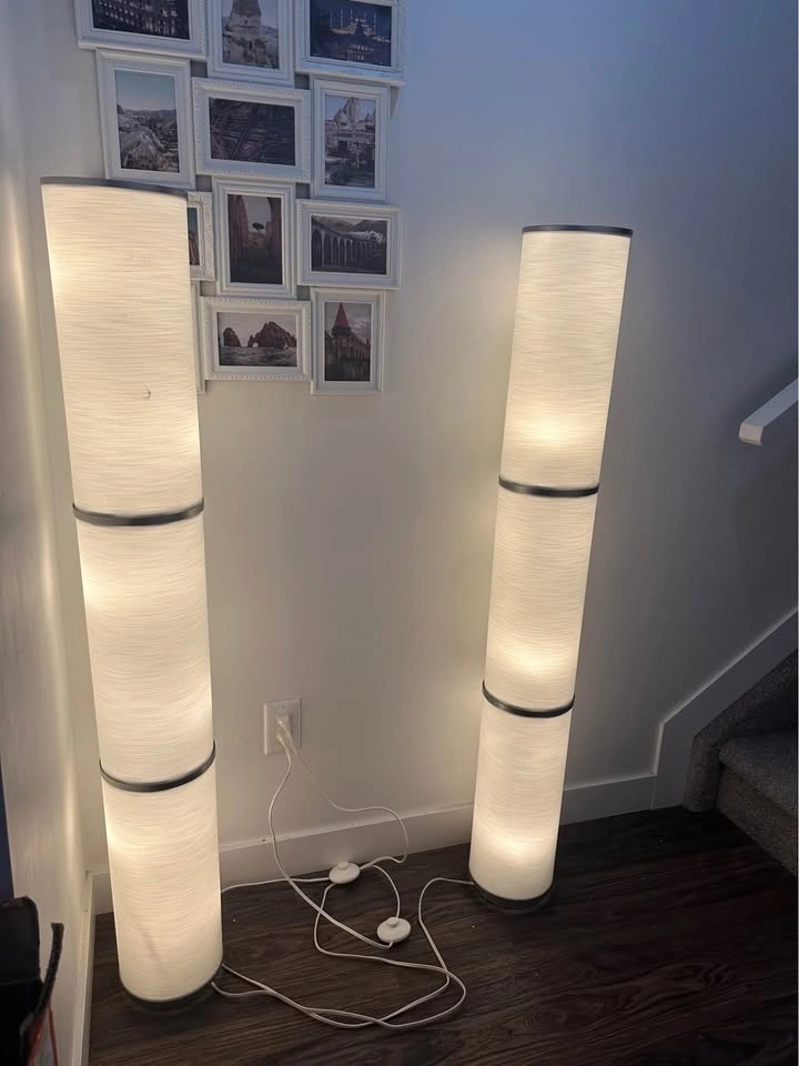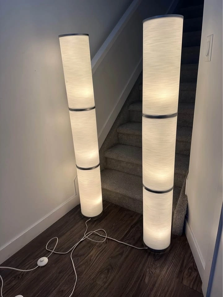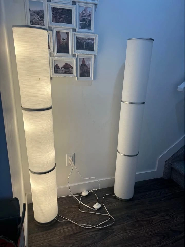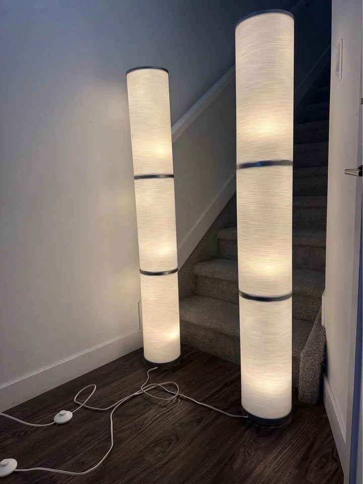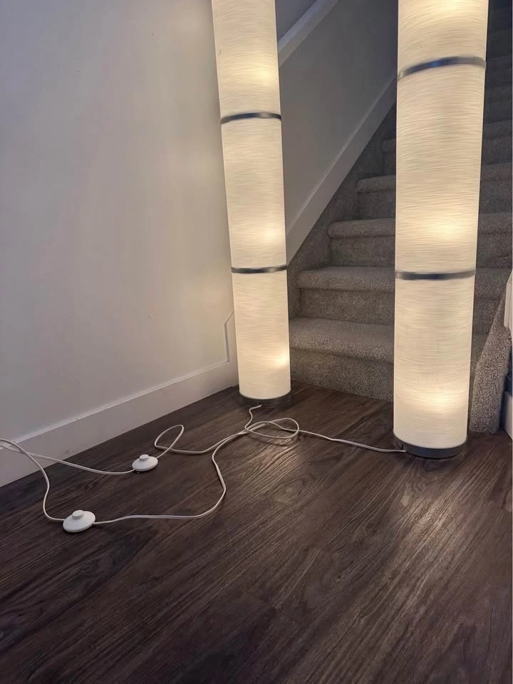 Brighten up your living space with this stylish pair of IKEA floor lamps. Tall, sleek, and elegant, they provide warm ambient lighting that’s perfect for a living room, bedroom, or reading corner.