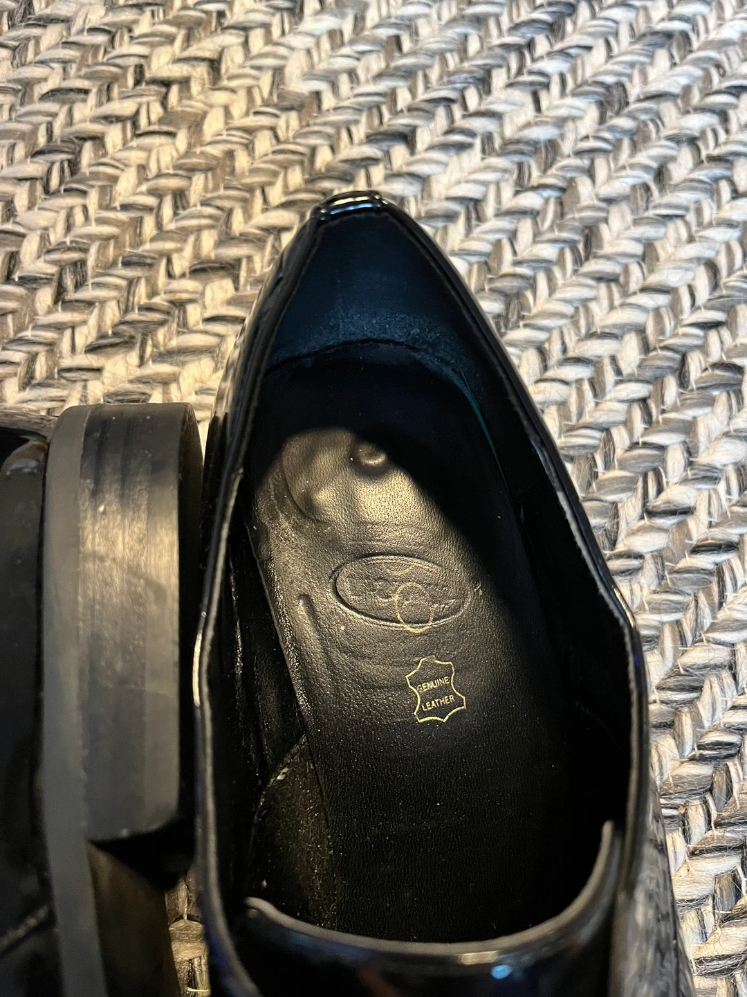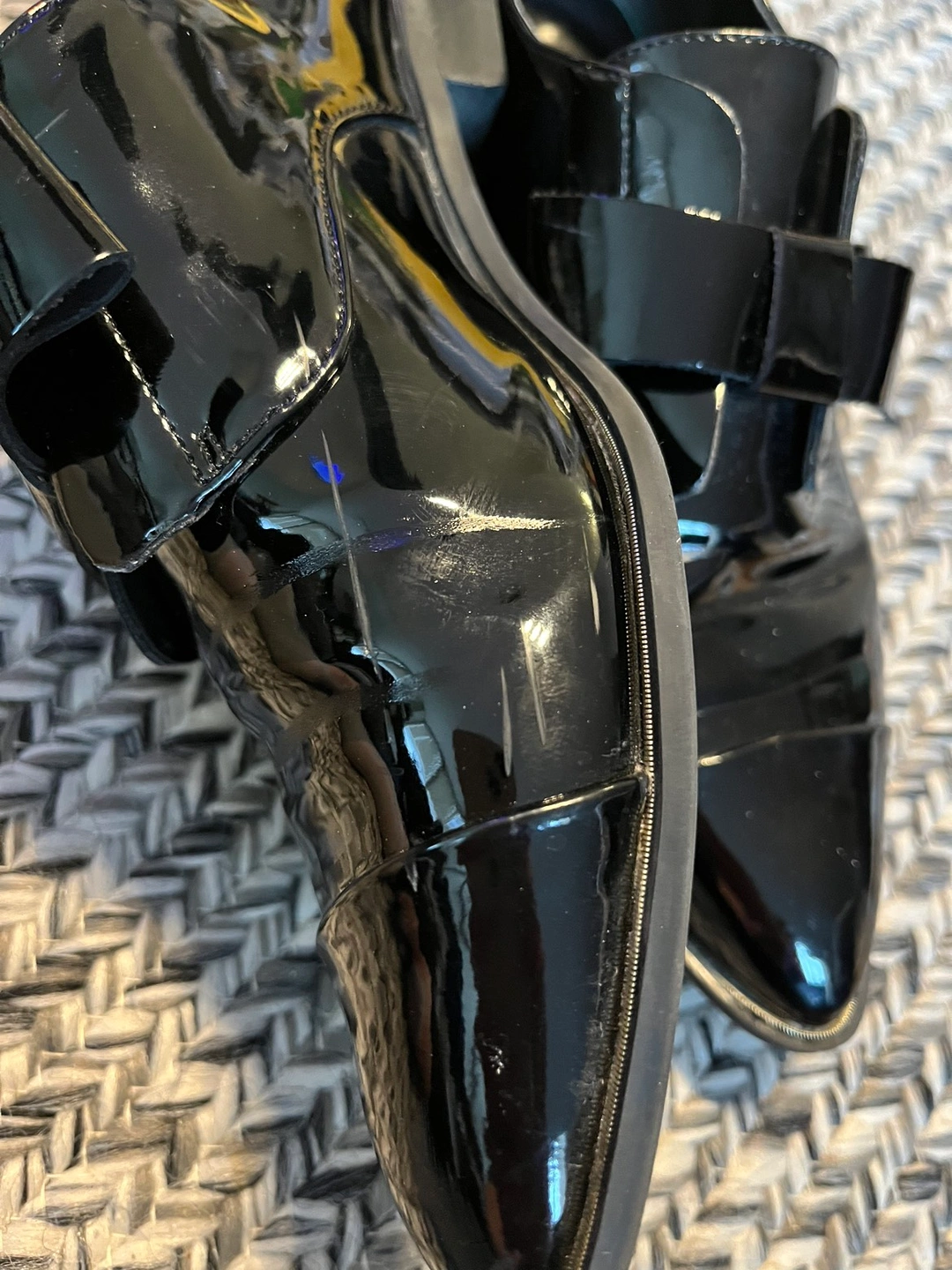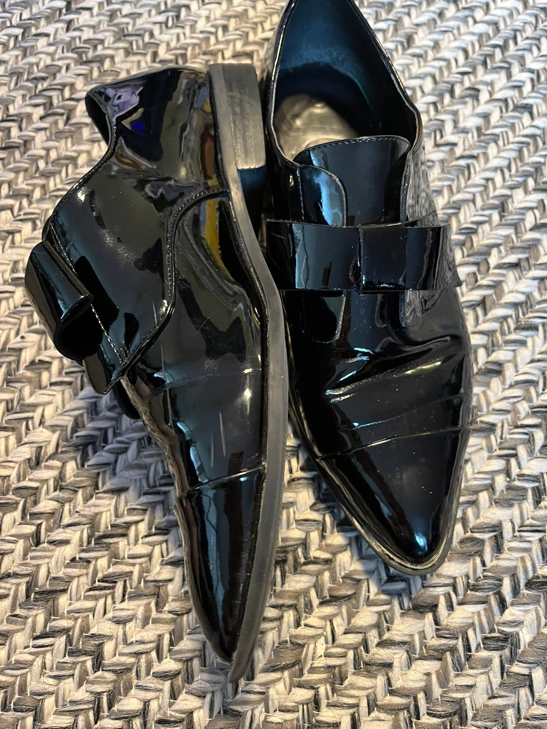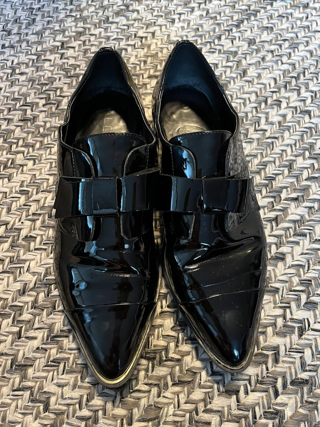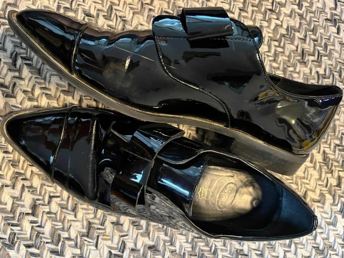 Black patent leather slip on brogues/pumps