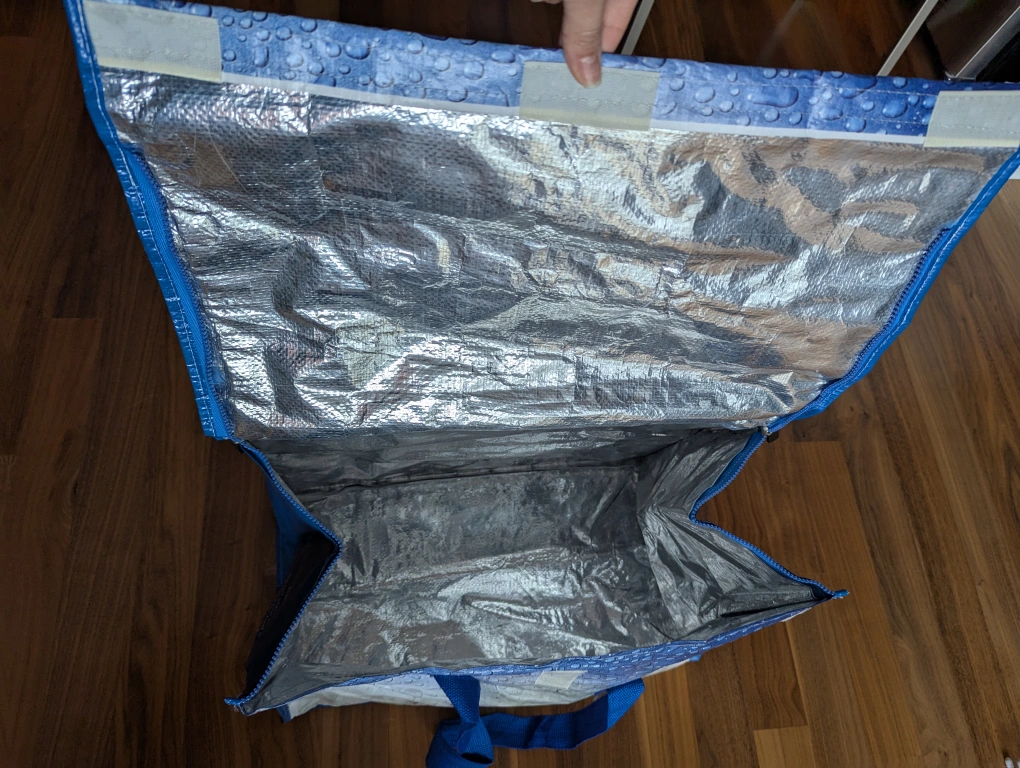 Reusable insulated grocery bag with zipper closure. Has a large capacity and is in great condition. Perfect for transporting cold or frozen foods.