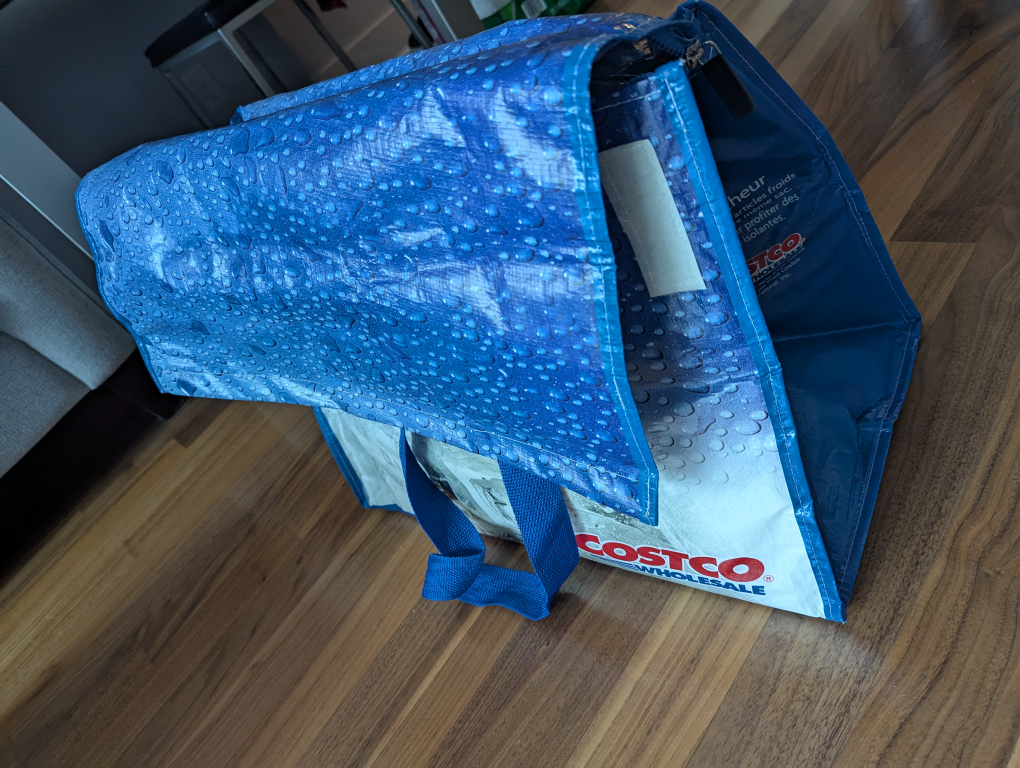Reusable insulated grocery bag with zipper closure. Has a large capacity and is in great condition. Perfect for transporting cold or frozen foods.