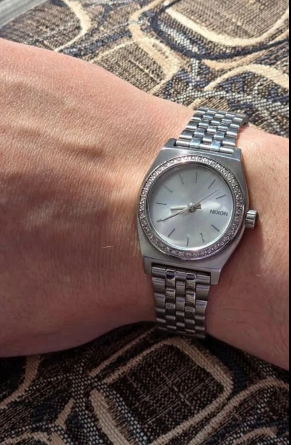 Nixon "Minimized" Small Time Teller with Swarovski Crystals around face. Women's watch.