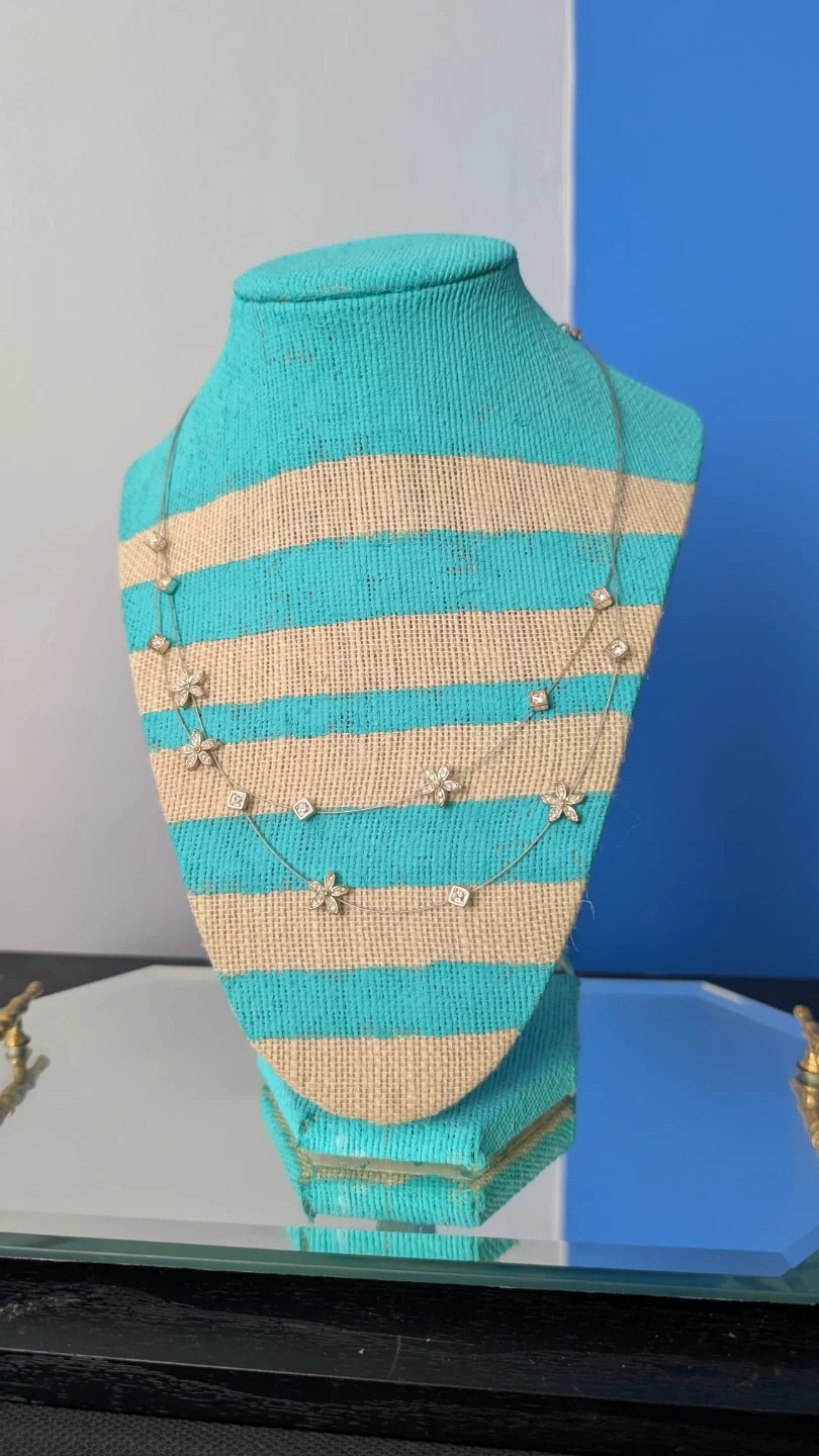Silver-tone necklace with flower and square charms