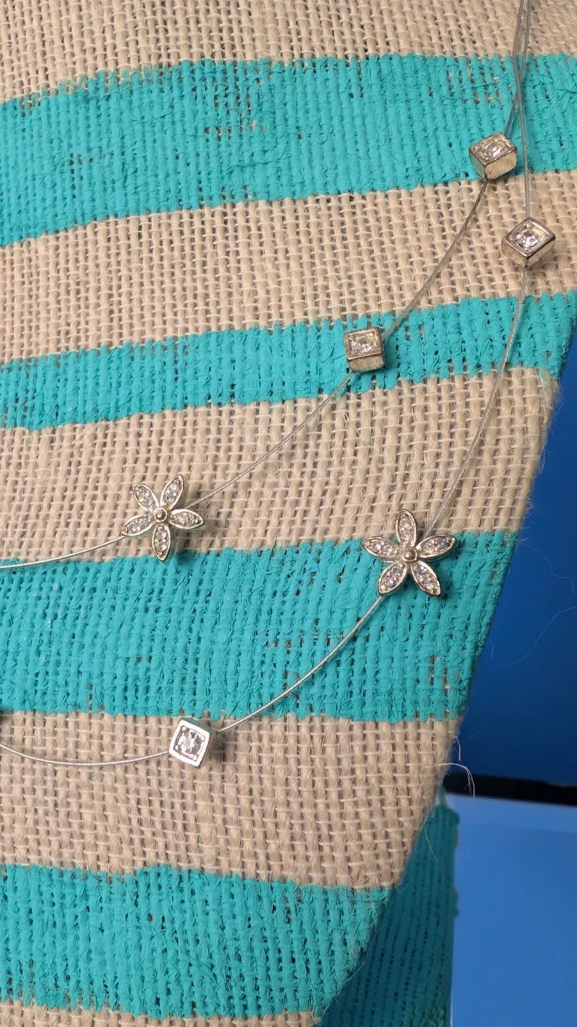 Silver-tone necklace with flower and square charms