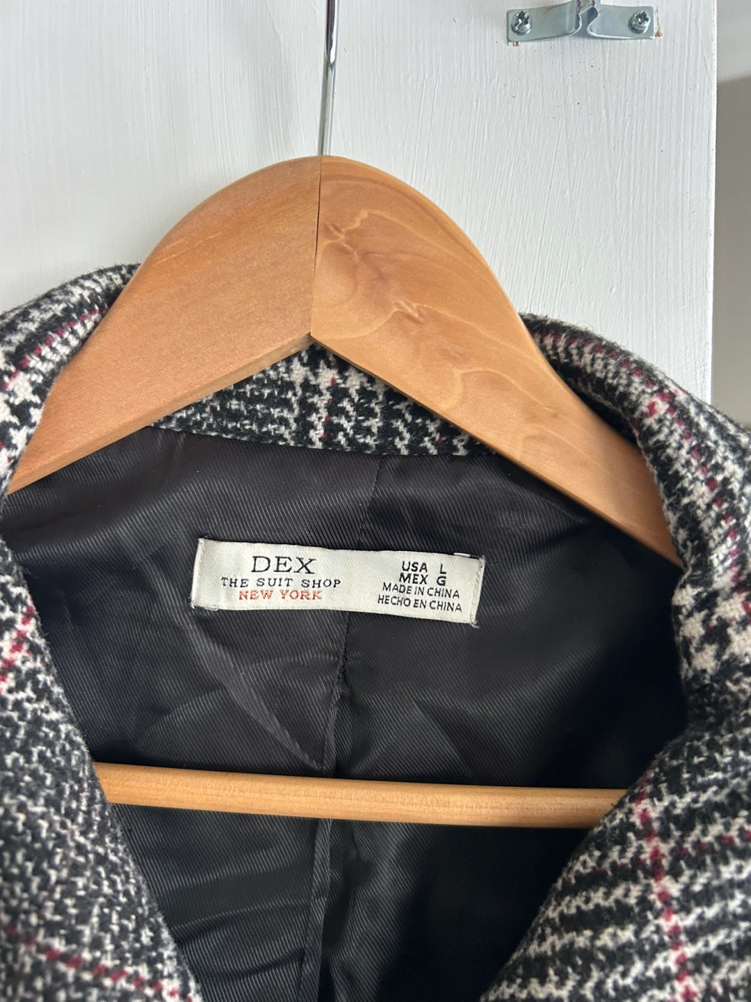 This DEX The Suit Shop coat features a classic plaid pattern with a belt for a cinched waist. It's fully lined and made for warmth. Great for cooler weather! Excellent condition wore a few times. No damage no missing buttons or rips.
