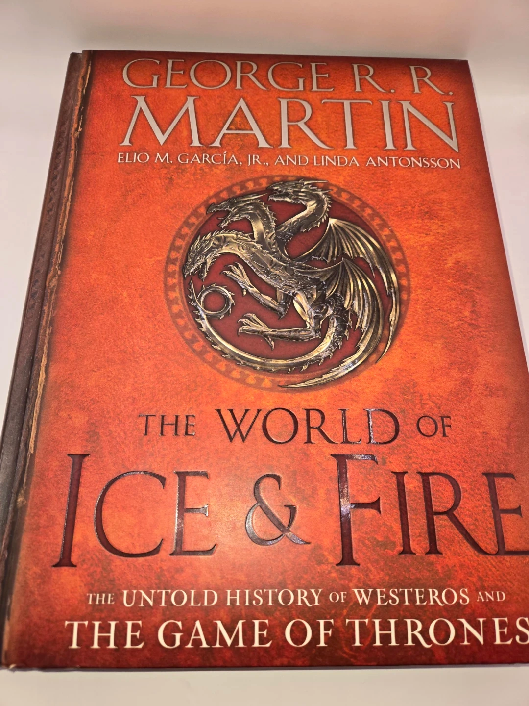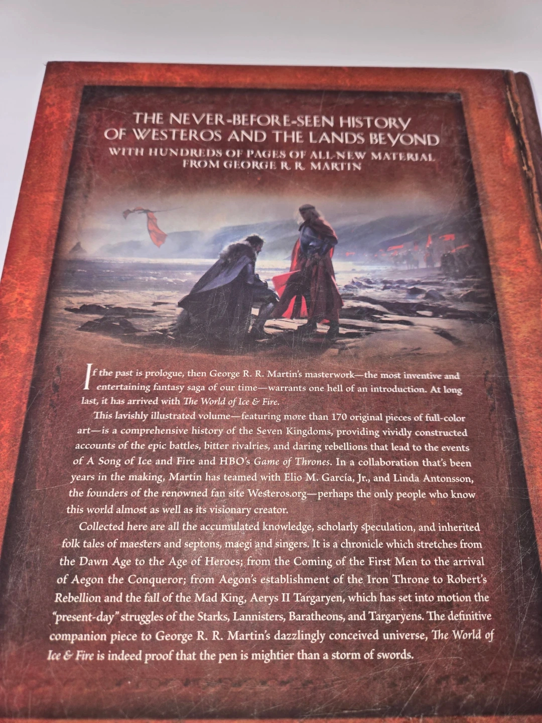 Selling 'The World of Ice & Fire' book by George R.R. Martin! It's a comprehensive history of Westeros and the lands beyond. This book is filled with all-new material from the author of 'A Song of Ice and Fire'. It features over 170 pieces of full-colour art, detailing the events of the making of Game of Thrones