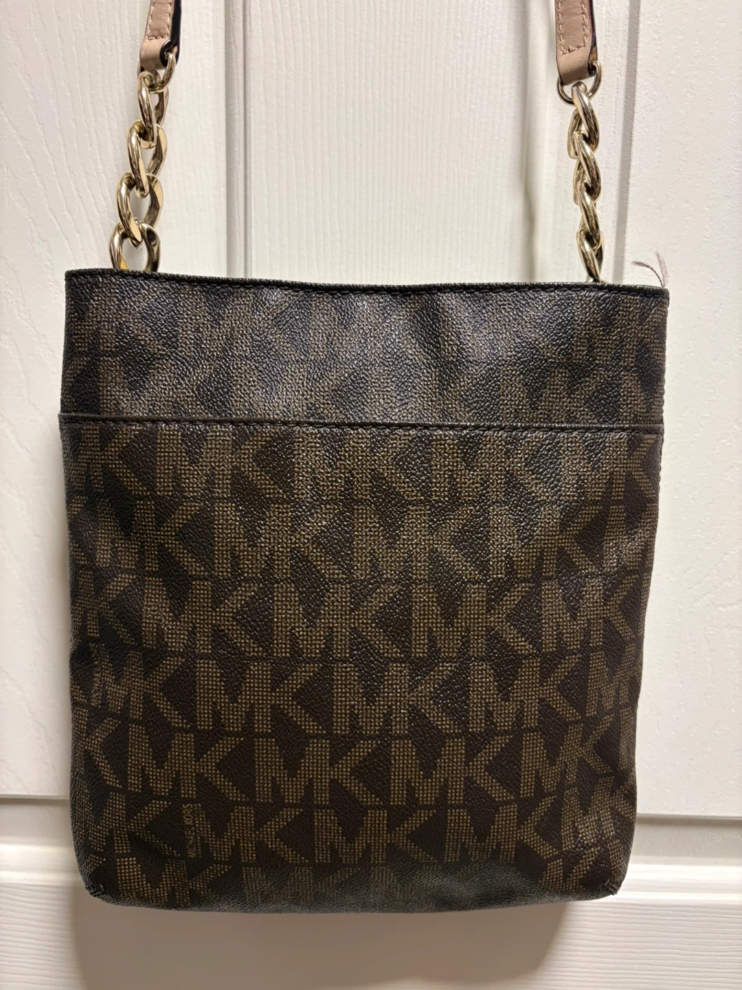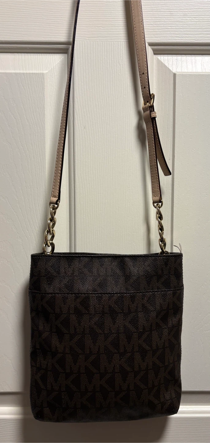 Michael Kors Brown Signature Print Leather Crossbody Bag