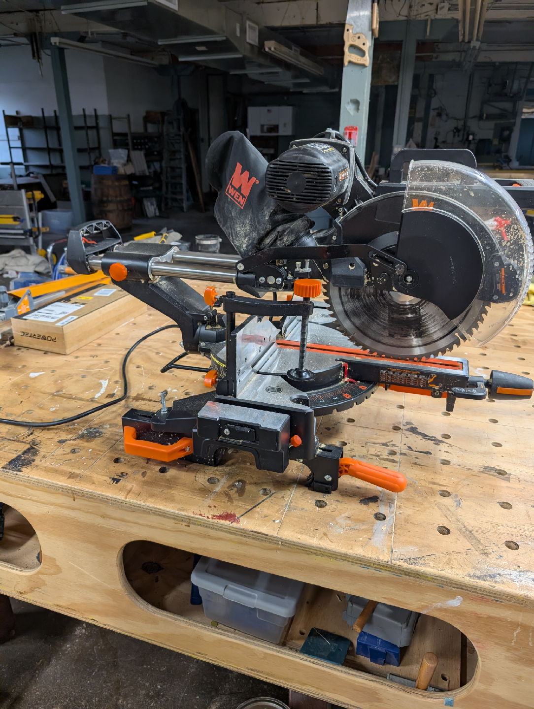 Selling a WEN 12-inch dual-bevel miter saw, model MM1214.