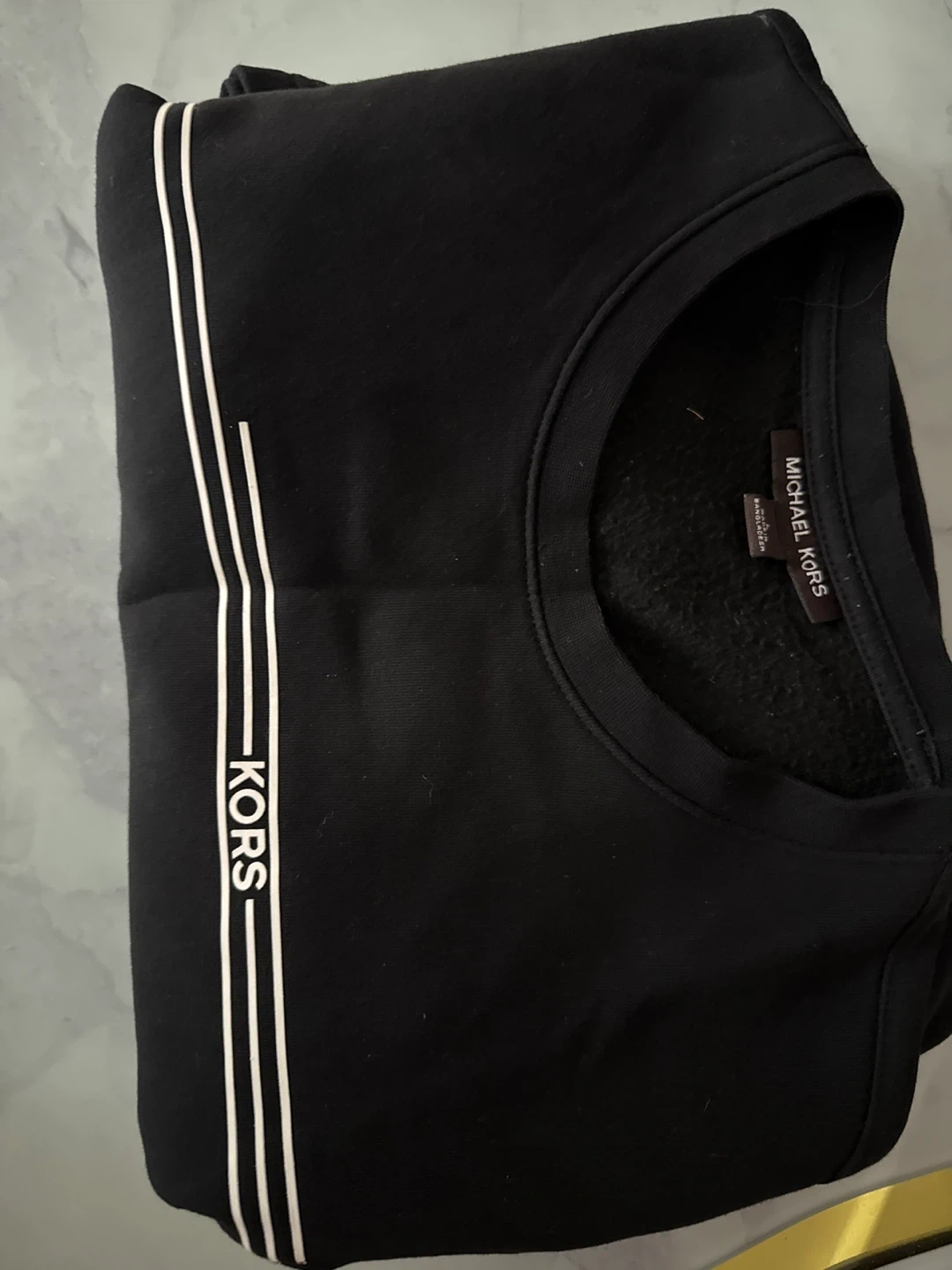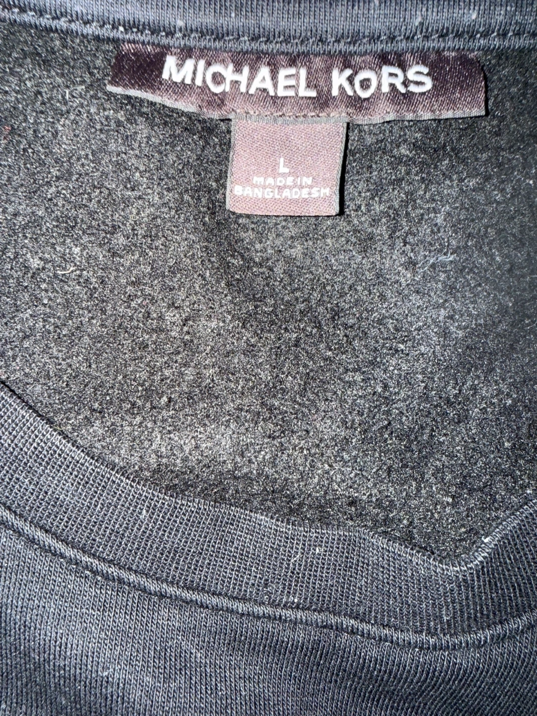 Michael Kors black sweatshirt with white stripe detail and KORS logo. Size L. Made in Bangladesh.