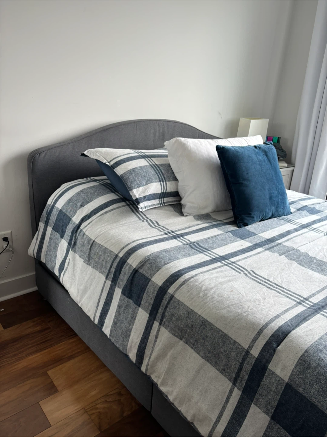 Grey Upholstered Queen Bed Frame with Storage Drawer