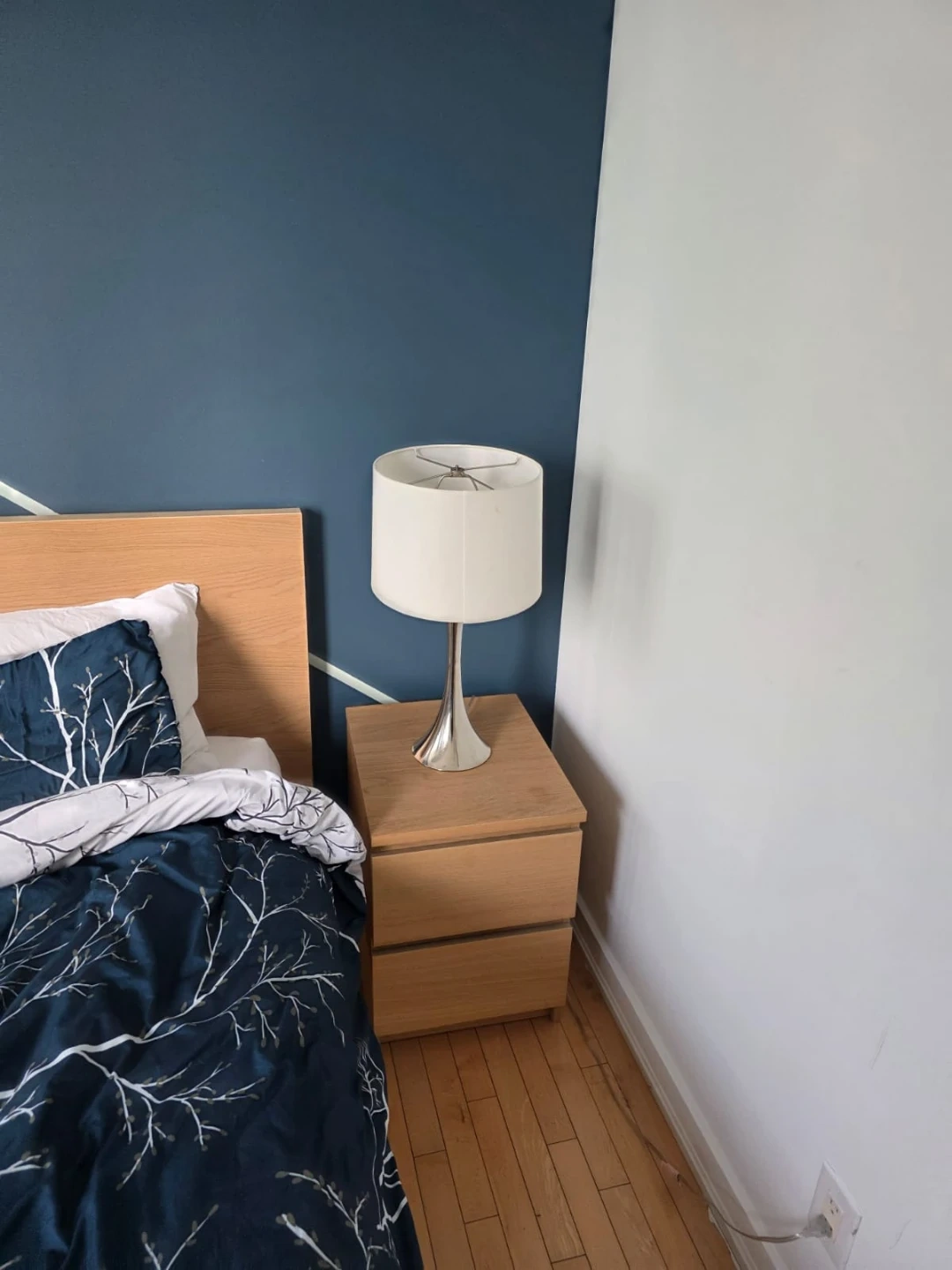 A clean, light wood nightstand with two smooth-gliding drawers. It's perfect for storing bedside essentials. The top surface offers ample space for a lamp and other items.