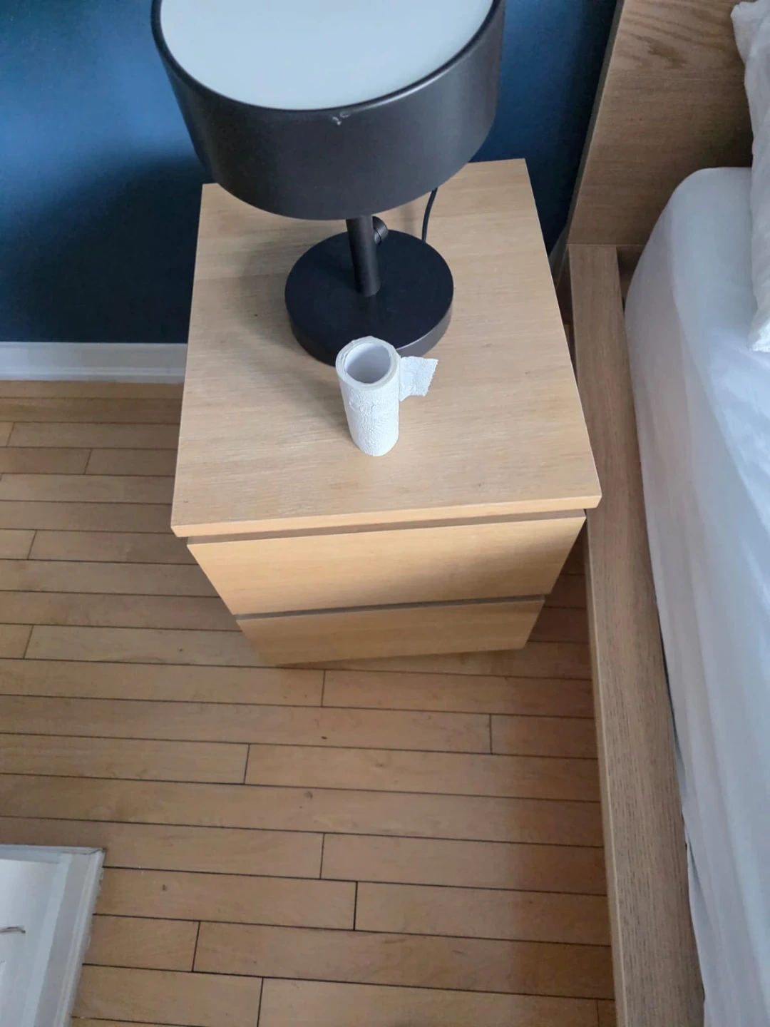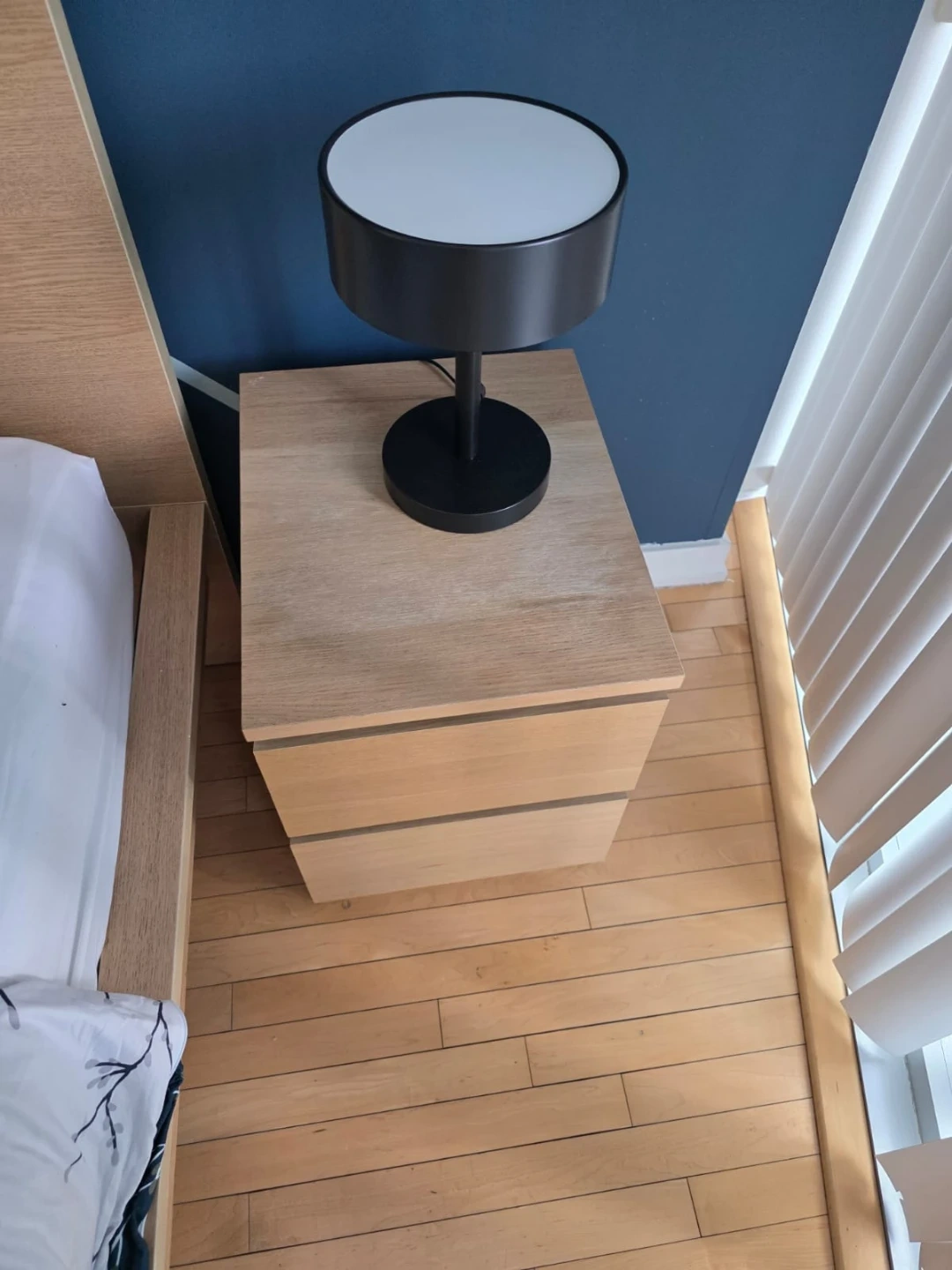 A clean, light wood nightstand with two smooth-gliding drawers. It's perfect for storing bedside essentials. The top surface offers ample space for a lamp and other items.