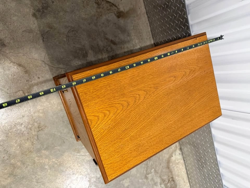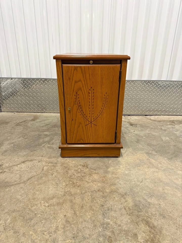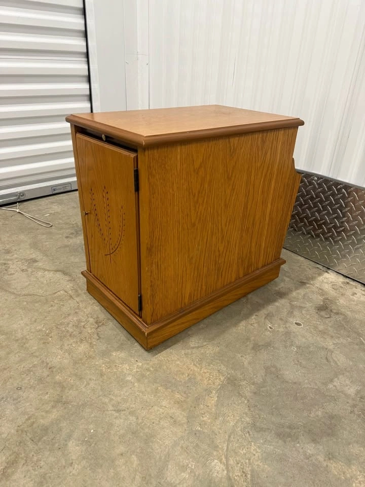 Nice older cabinet and end table. Has a few loose drawer inside. Room to store larger things (no shelves). Has a magazine rack on the backside. Overall in good condition. Has a bit of basic wear from use. Measurements 22x12 Top.