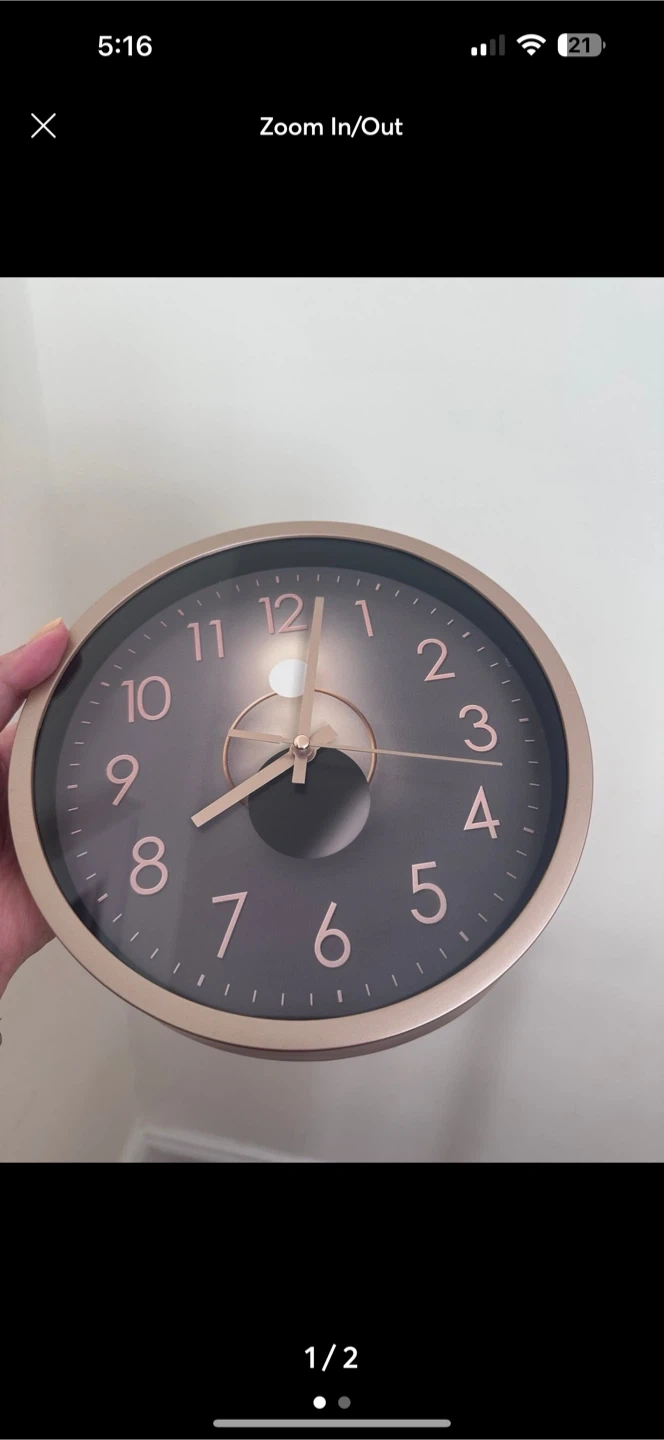 Here's a stylish round wall clock that will add a touch of elegance to any room! It features a sleek rose gold finish and easy-to-read numbers, making it both functional and decorative