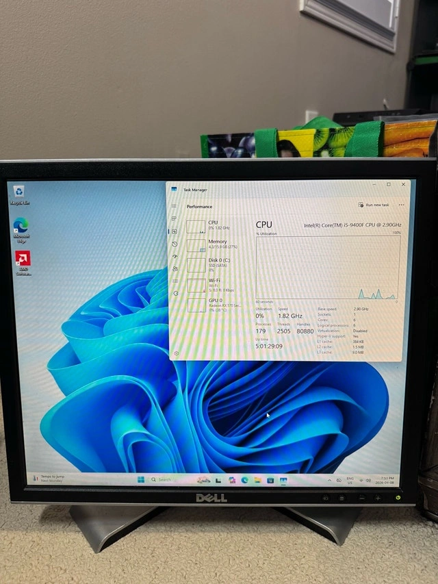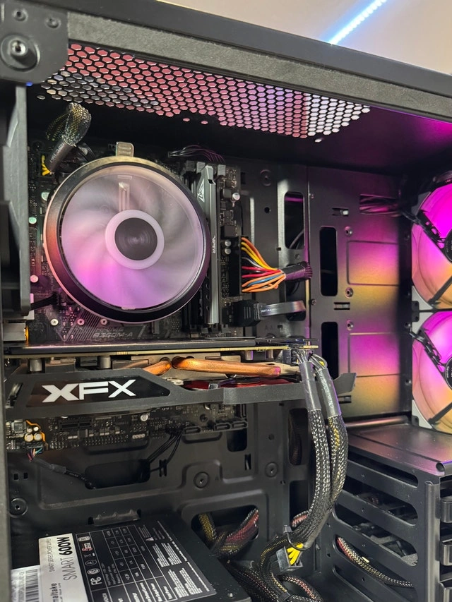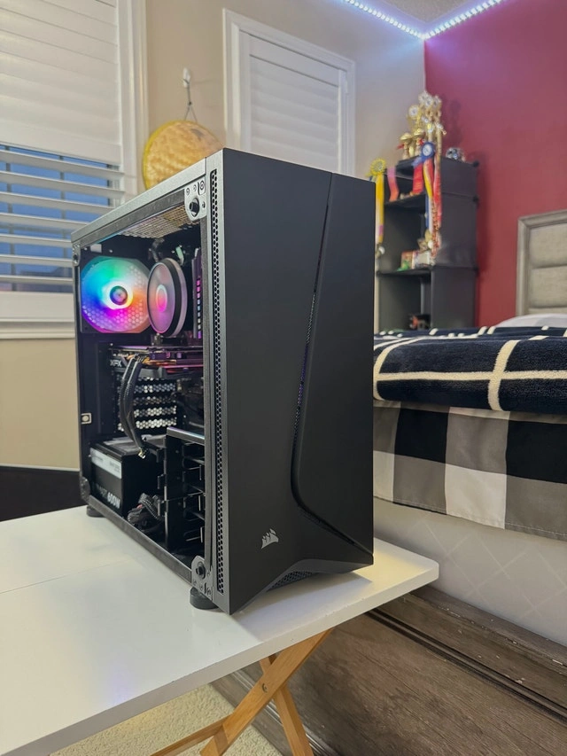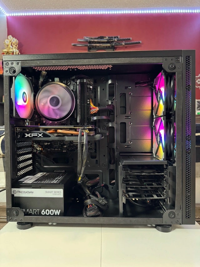 Entry-level gaming PC, great for 1080p gaming at medium settings (high in esports titles). Ready to use, runs cool and quiet, and has been well maintained. Specs: CPU: Intel Core i5-9400F, Motherboard: Asus PRIME B360M-A, RAM: 16GB Patriot Viper Elite 2666MHz, Storage: 120GB SanDisk SSD, Video Card: XFX RX 570 8GB, Case: Corsair Carbide SPEC-05, Power Supply: Thermaltake Smart 600W 80+, OS: Windows 11 Pro. Performance examples at 1080p Medium: Apex Legends ~80-100 FPS, Fortnite ~100-140 FPS, Valorant ~150+ FPS. The PC passes all stress tests and I can show it working on pickup. All RGB fans are static. Open to offers or trades for other gaming PCs or parts. Public meetup/pickup preferred.