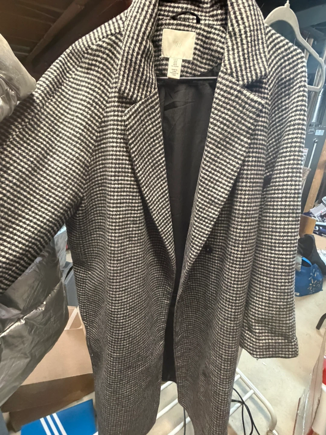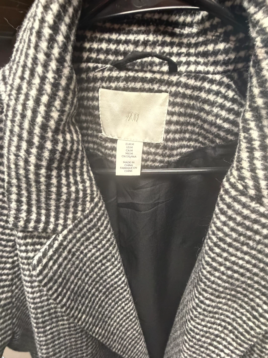 Selling a stylish H&M houndstooth coat in size medium! It's in great condition and ready to keep you warm and fashionable.