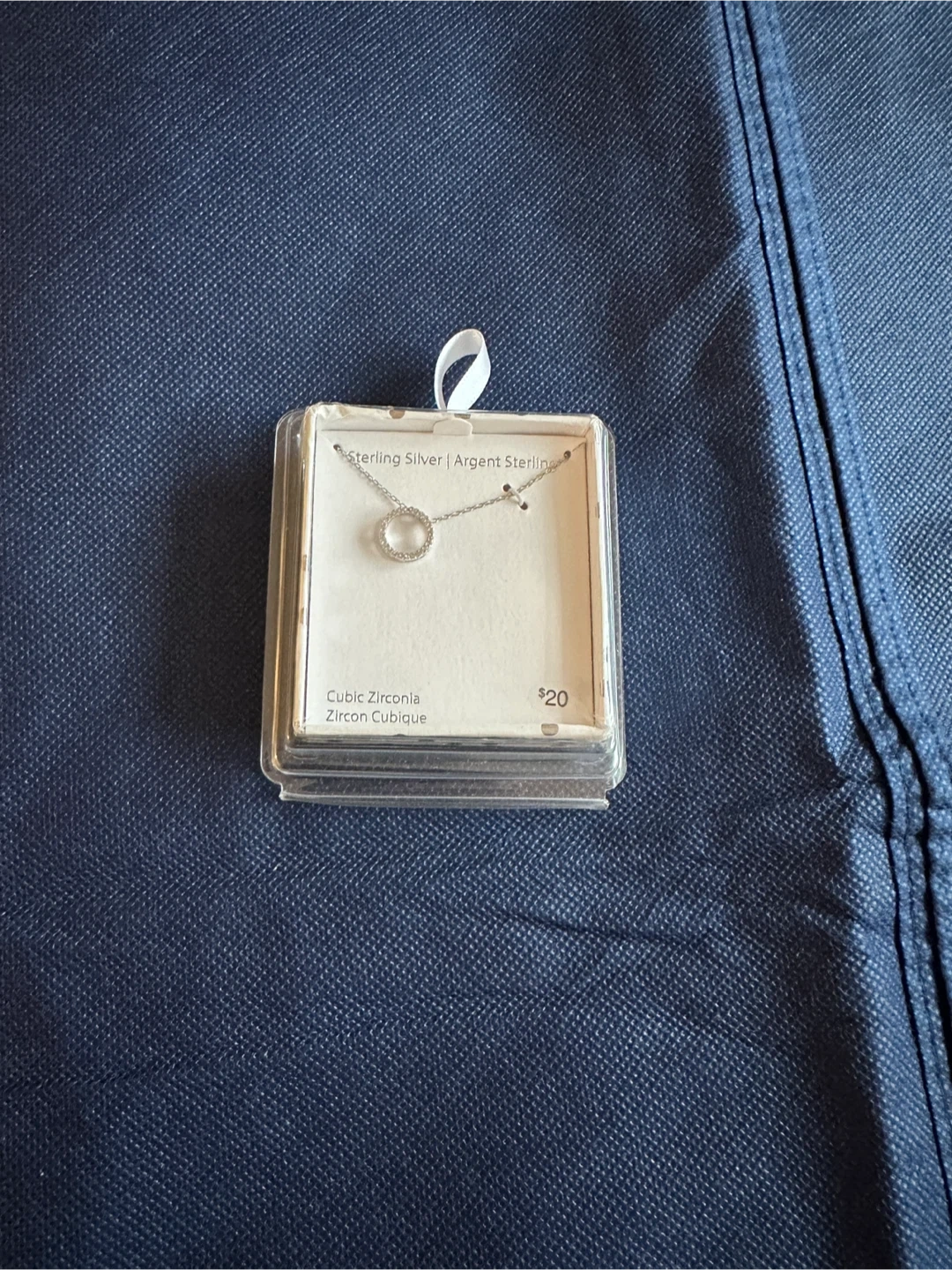 Sterling silver necklace featuring a circular pendant with cubic zirconia. Original price was $20. Moving sale
