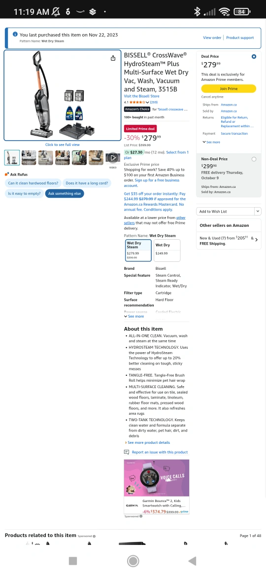 BISSELL CrossWave HydroSteam Plus Multi-Surface Wet Dry Steam