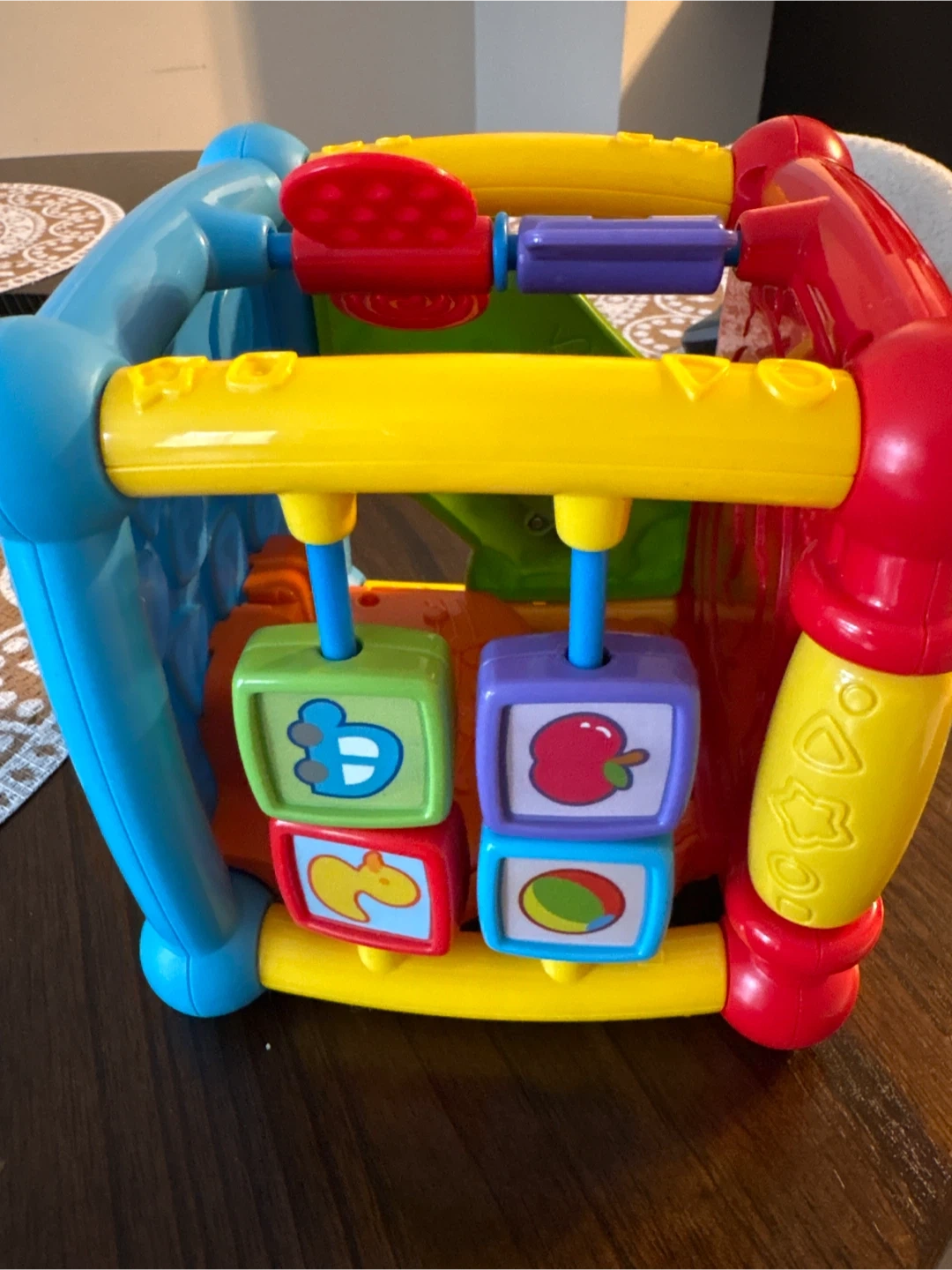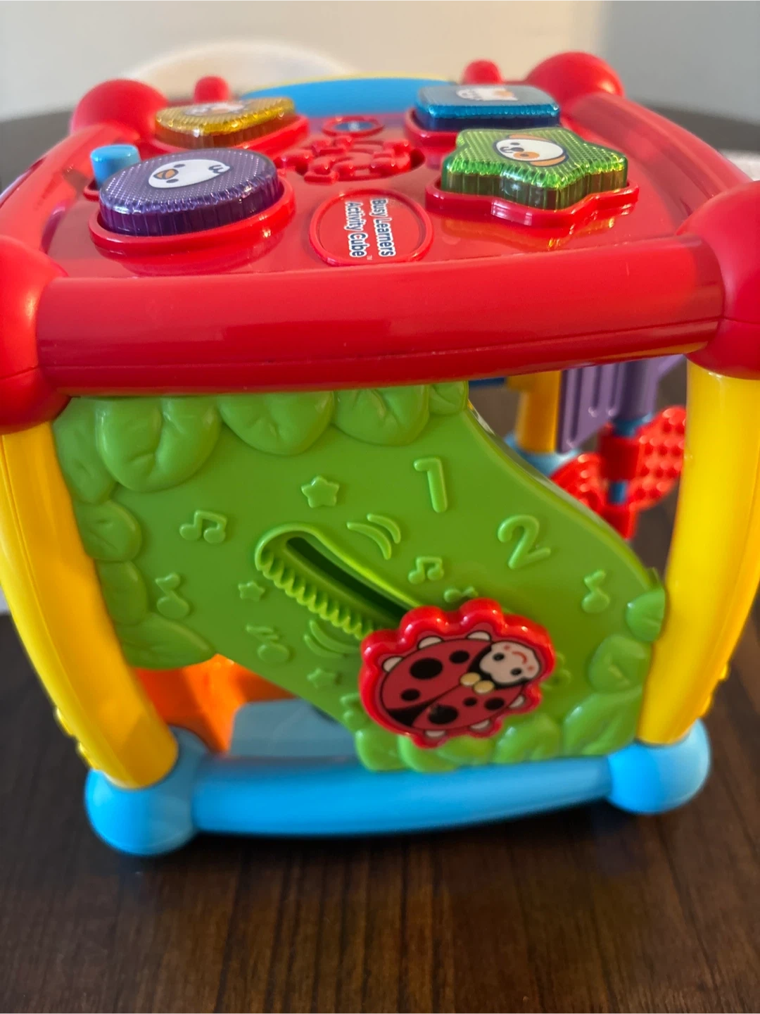 This VTech Busy Learners Activity Cube has lots of fun activities for little ones. It's a colourful and engaging toy with various buttons, gears, and playful sounds. It helps develop fine motor skills and encourages exploration.