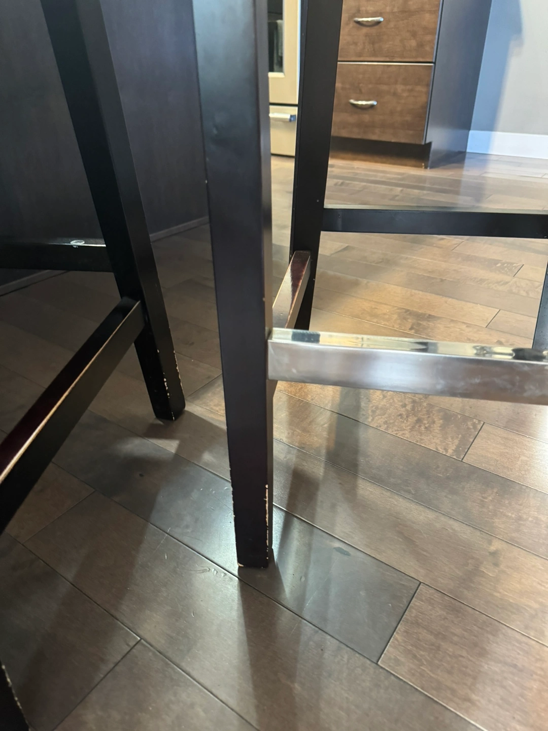 Three bars stools from the brick. Any damage is shown on the pictures on the bottom of the legs but is very minimal . Can be filled in with solution I have. Comes with 3. Open to deliver