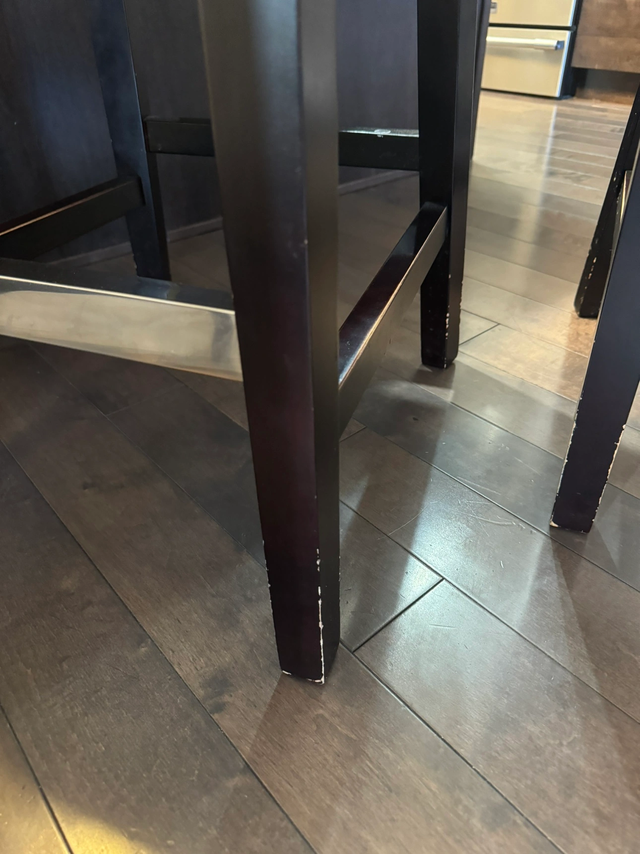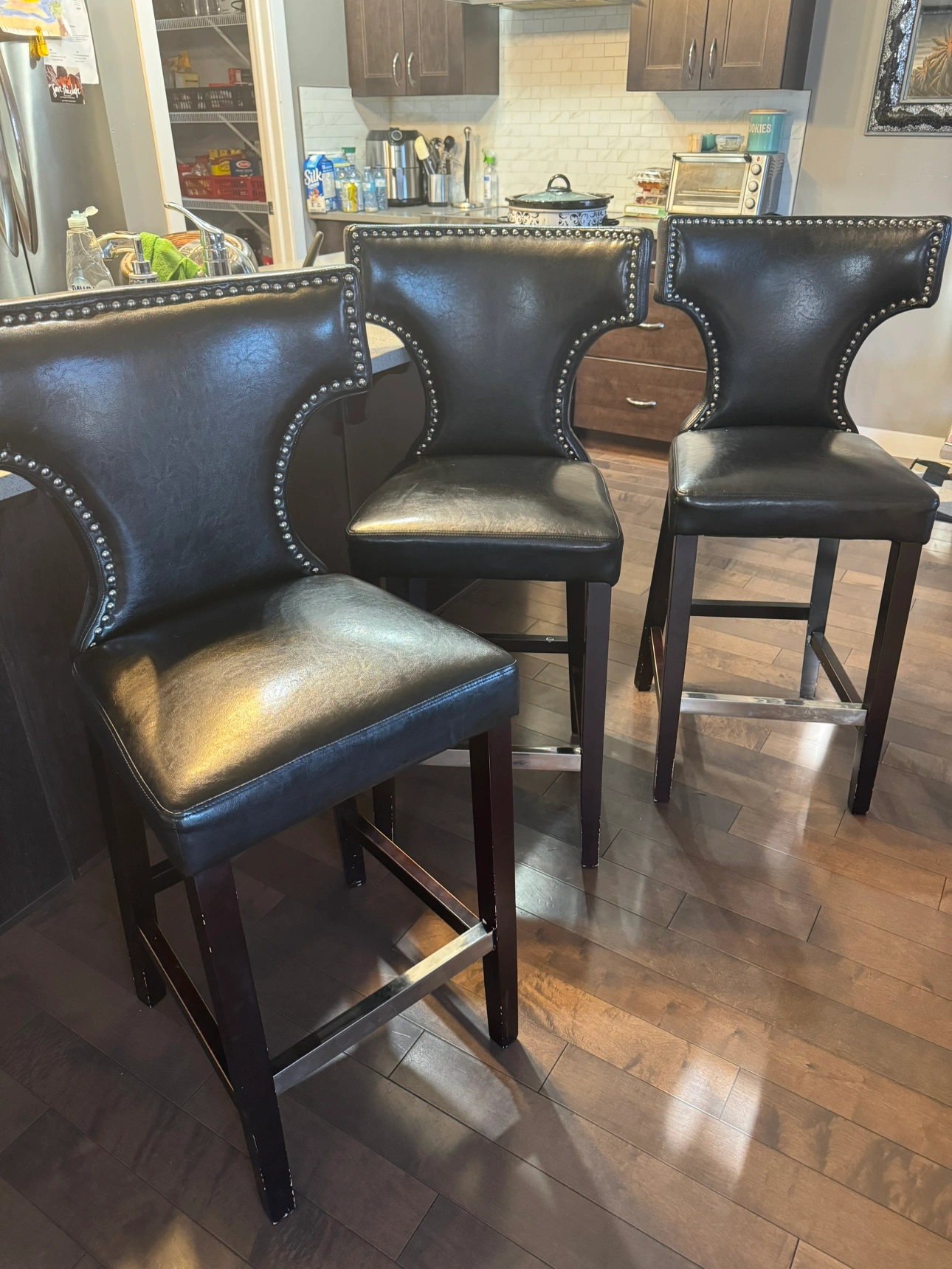 Three bars stools from the brick. Any damage is shown on the pictures on the bottom of the legs but is very minimal . Can be filled in with solution I have. Comes with 3. Open to deliver