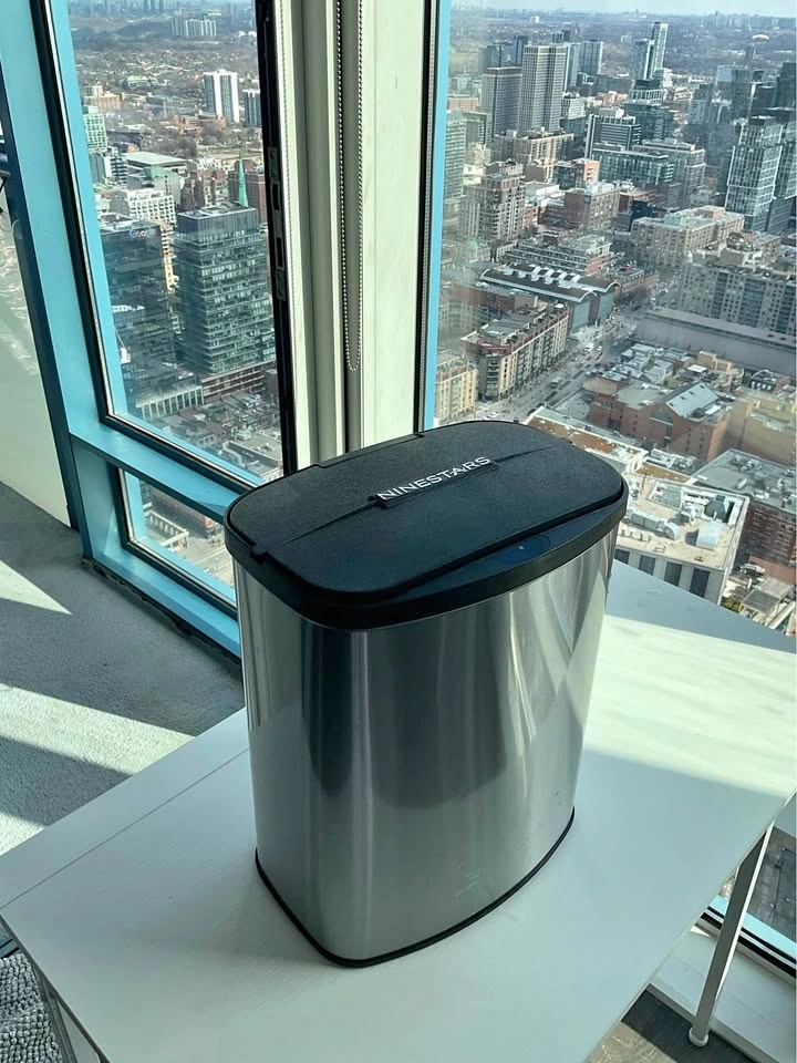 Sleek stainless steel automatic trash can with motion sensor lid. Hands-free, hygienic, and perfect for kitchen or condo living. Works great, clean condition. Video not showing motion sensor as I don’t have the batteries. Gently used, selling for a friend who moved out of the country. Pickup: Downtown Toronto (Esplanade & Younge).