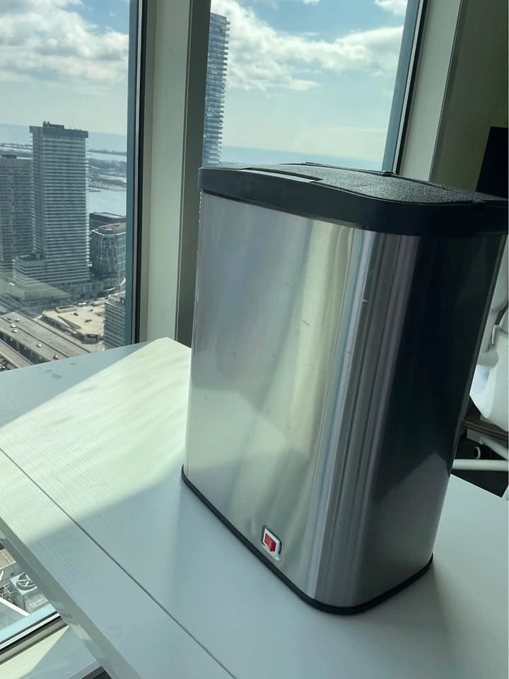 Sleek stainless steel automatic trash can with motion sensor lid. Hands-free, hygienic, and perfect for kitchen or condo living. Works great, clean condition. Video not showing motion sensor as I don’t have the batteries. Gently used, selling for a friend who moved out of the country. Pickup: Downtown Toronto (Esplanade & Younge).